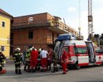 Unterstützung des Roten Kreuzes bei einer Menschenrettung auf der Baustelle für einen Wohnbau. Ein Arbeiter war gestürzt und musste vom 2ten Stock abtransportiert werden.