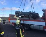 Fahrzeugbergung auf der S3, Fahrtrichtung Hollabrunn bei der Ausfahrt Obermallebarn. Ein Pick-Up ist aus unbekannter Ursache von der Fahrbahn abgekommen und in den Straßengraben geschlittert.