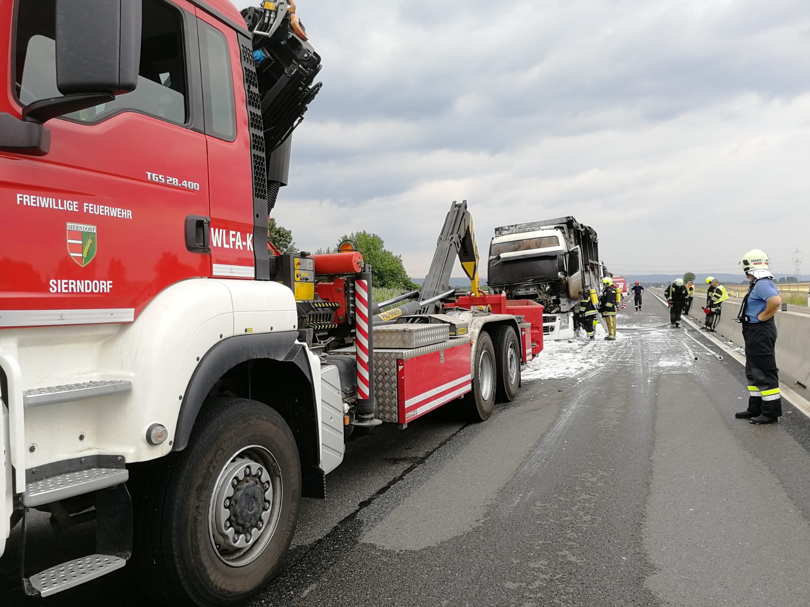 Der Auflieger wurde mit einem Ersatzfahrzeug entfernt, die Bergung der Zugmaschine übernimmt eine Privatfirma.