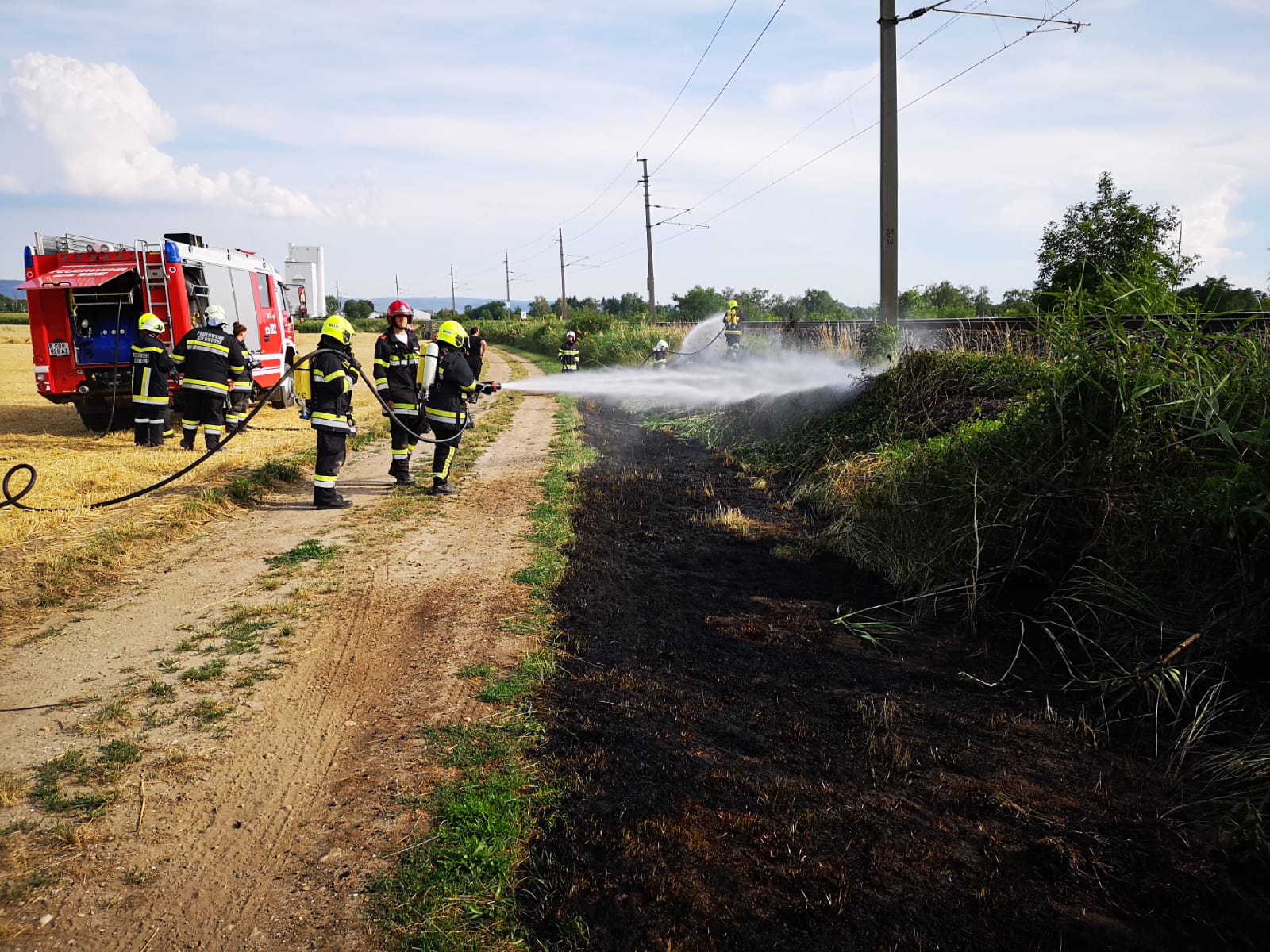 Am 6.7. wurden wir am frühen Abend zu einem Bahndammbrand zwischen Oberolberndorf und Sierndorf im Bereich der Kläranlage alarmiert.