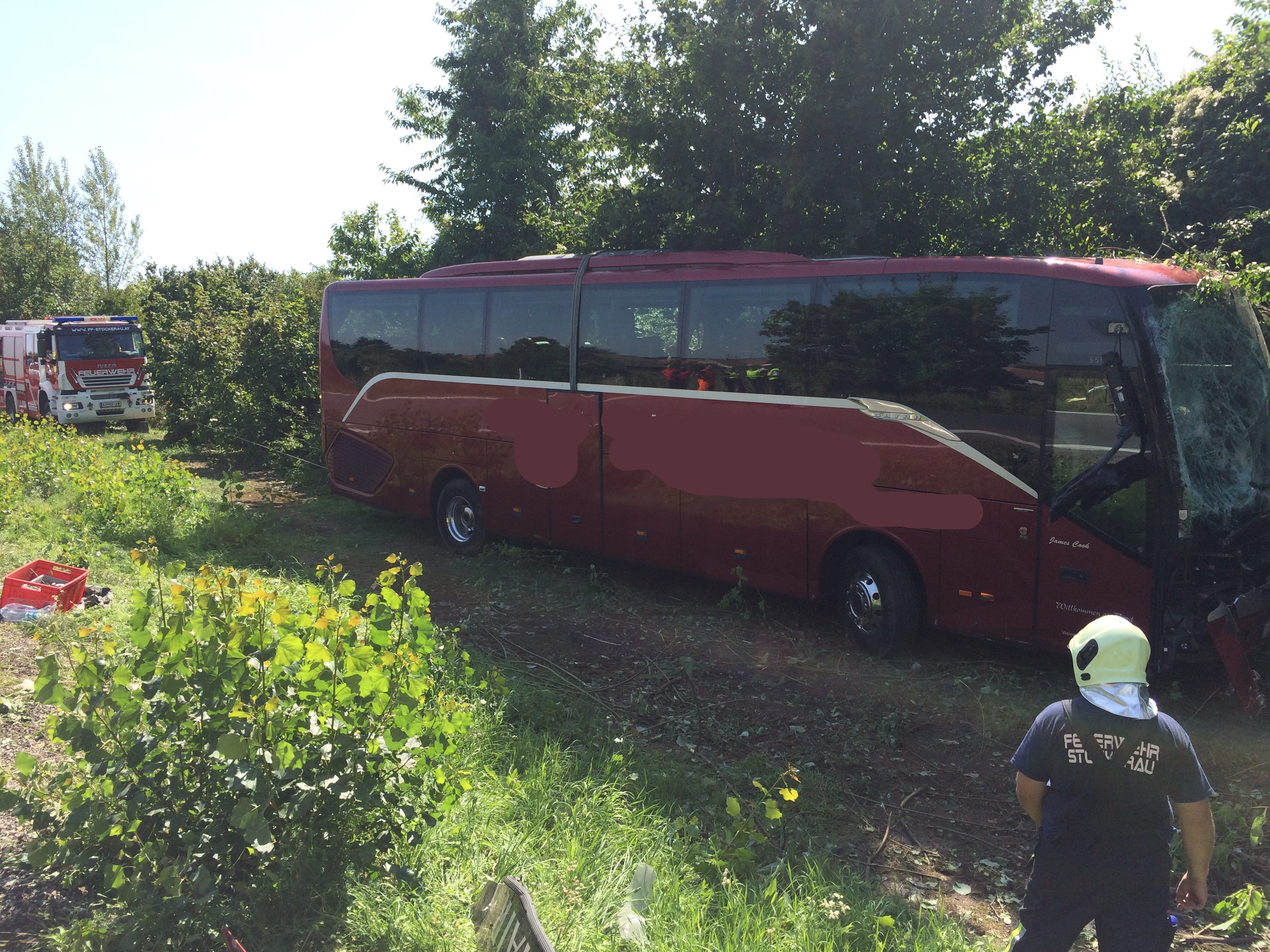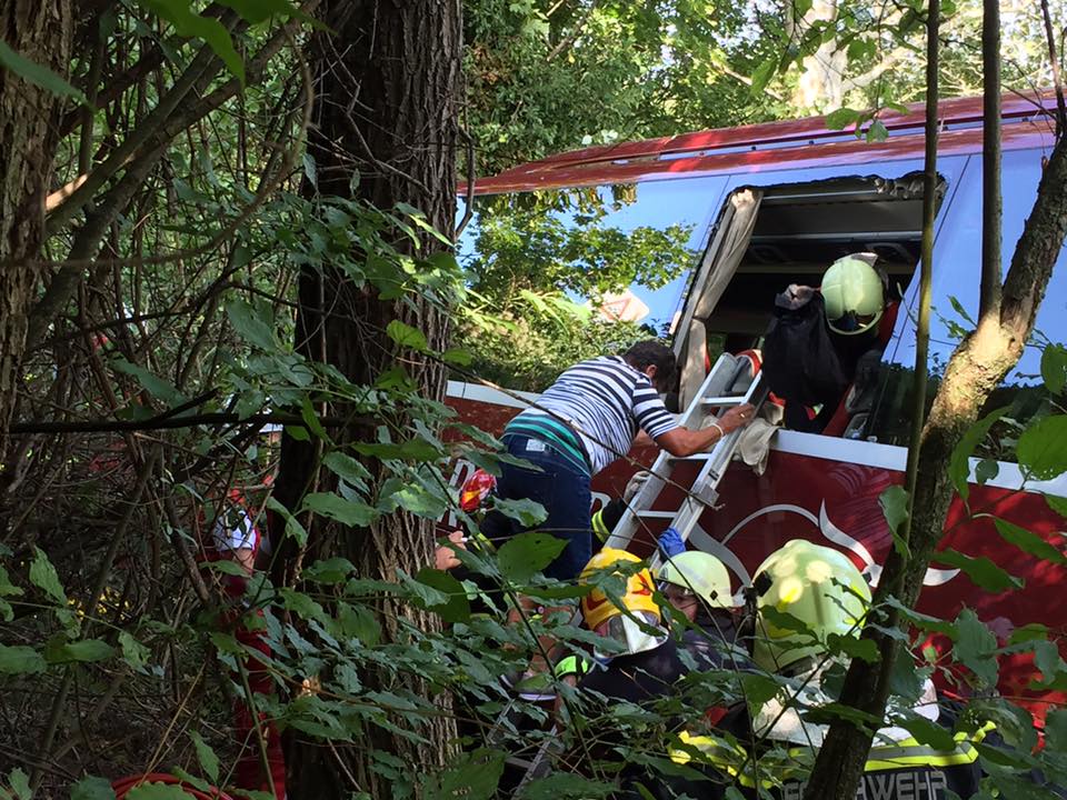 Gemeinsam mit dem Kräften des Roten Kreuzes und den Kameraden der anderen Feuerwehren wurden die Passagiere über ein Fenster und eine Leiter ins Freie gebracht, wo sie vom Roten Kreuz versorgt wurden. Die Fahrerin des Busses wurde beim Aufprall eingeklemmt und wurde nach der Erstversorgung im Bus über das Fahrerfenster gerettet. Sie wurde mit dem Notarzthubschrauber in ein Krankenhaus geflogen.