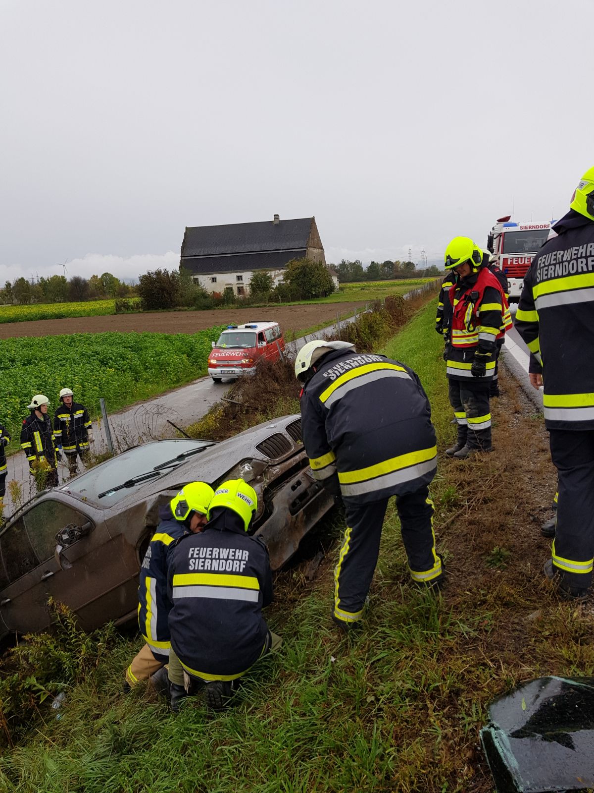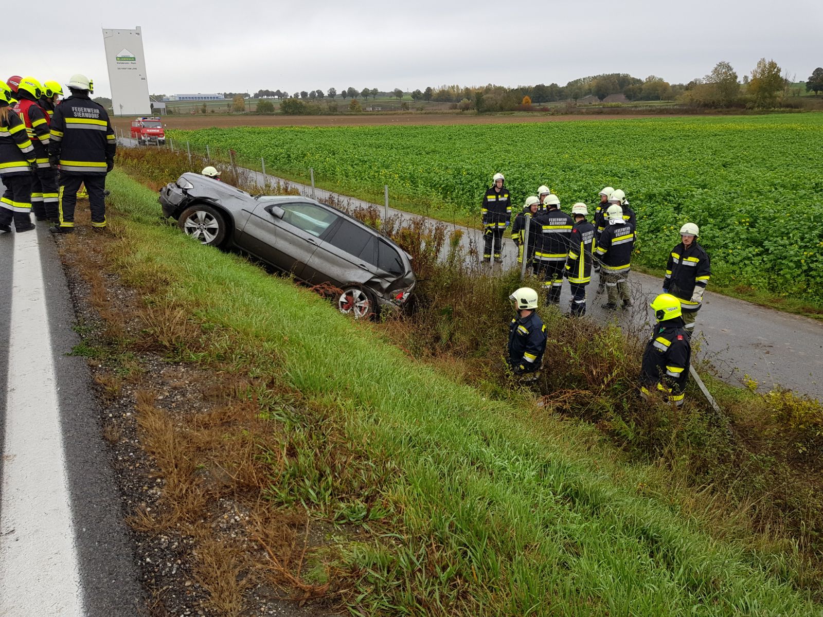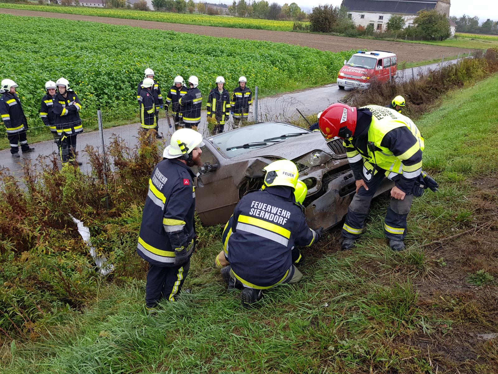 Laut den Notrufen, die bei der BAZ Stockerau eingingen, wurde eine eingeklemmte Person vermutet. Aus diesem Grund wurde zeitgleich auch die FF Stockerau alarmiert, welche kurz vor dem RLF Sierndorf am Einsatzort eintraf und sofort Entwarnung geben konnte: Die vier Fahrzeuginsassen, eine Familie mit 2 Kindern, blieben zum Glück gänzlich unverletzt.