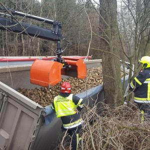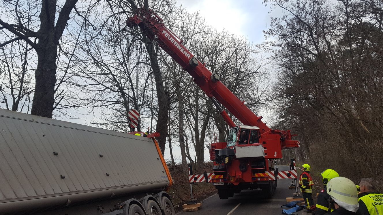 Zur Bergung des LKW wurde die FF Hollabrunn nachalarmiert, die mit dem Kranfahrzeug KF50 und dem WLFA-K anrückte.