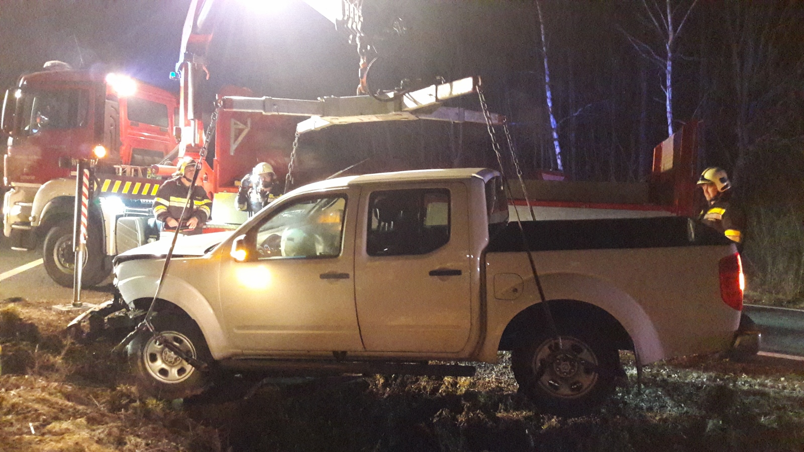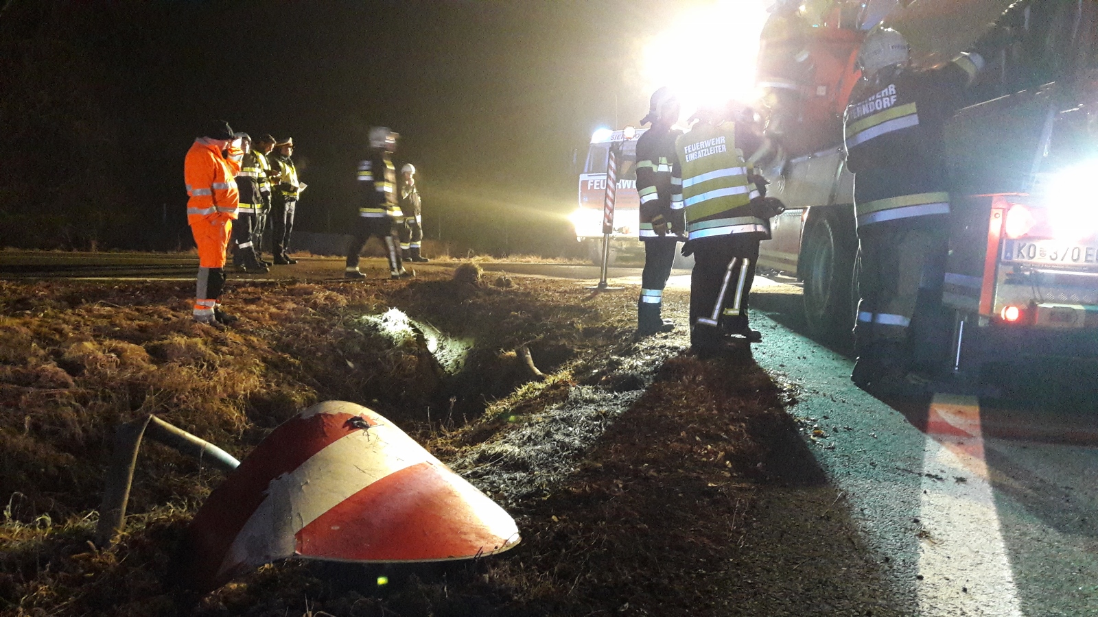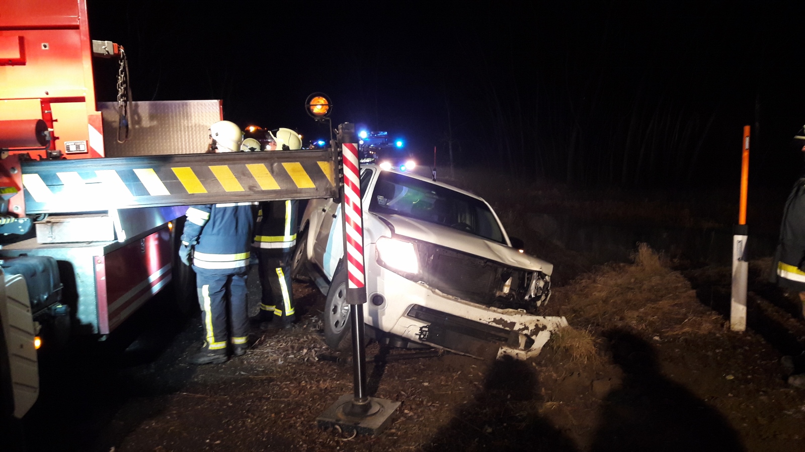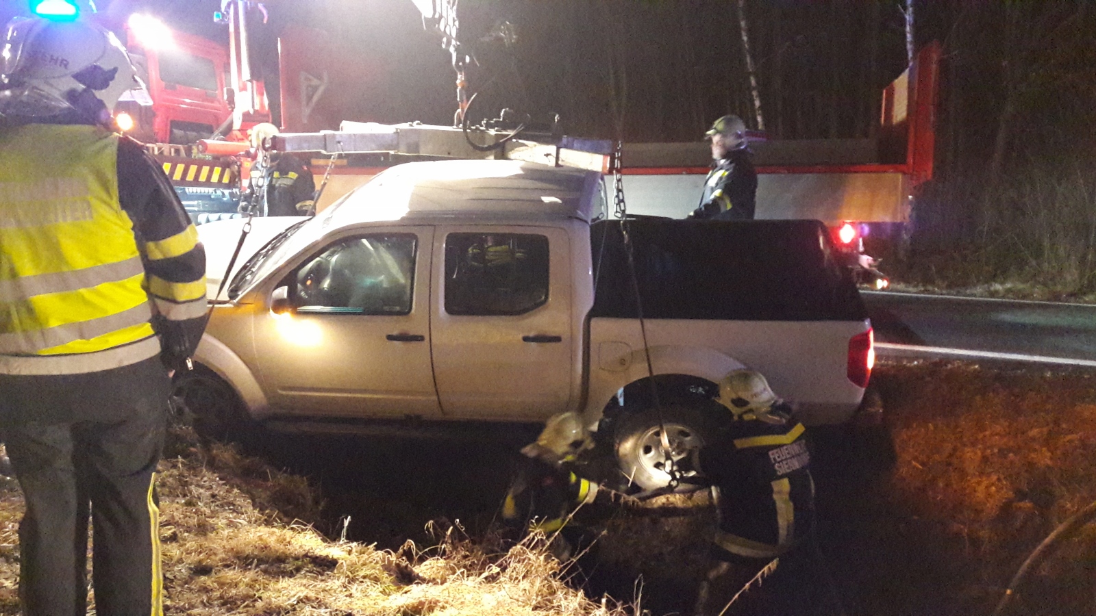 Fahrzeugbergung auf der S3, Fahrtrichtung Hollabrunn bei der Ausfahrt Obermallebarn. Ein Pick-Up ist aus unbekannter Ursache von der Fahrbahn abgekommen und in den Straßengraben geschlittert.
