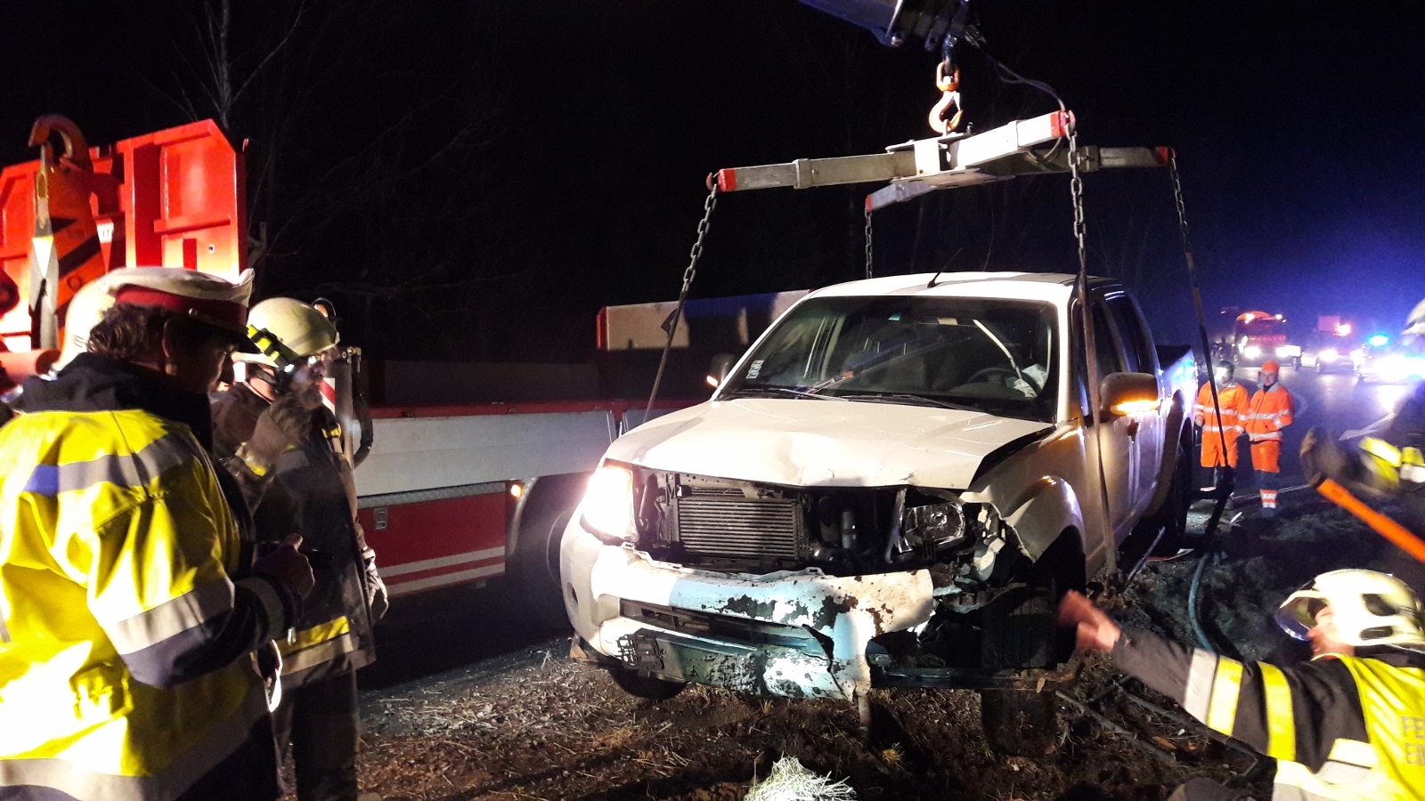 Nachdem die Unfallstelle abgesichert war, wurde das Fahrzeug mit dem WLFA-Kran beborgen und anschließend gesichert abgestellt.