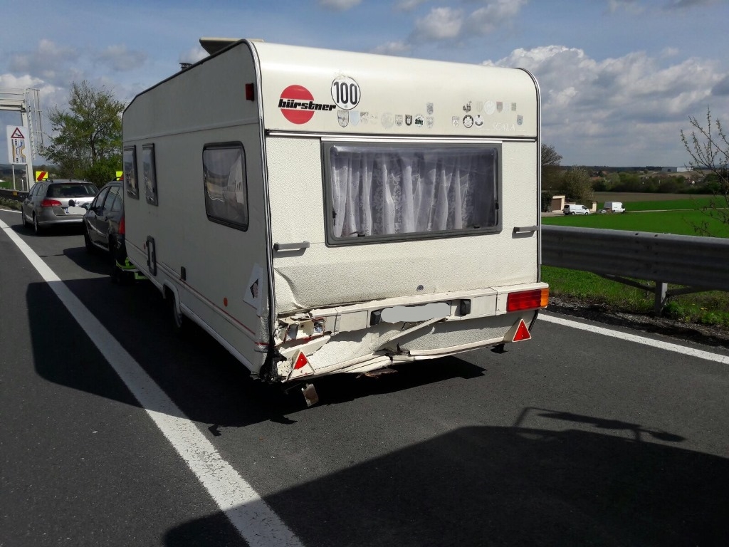 Am Ostersonntag kam es auf der S3, Richtungsfahrbahn Hollabrunn, zwischen Sierndorf und Obermallebarn, zu einem Auffahrunfall zwischen einem PKW und einem Wohnwagengespann. Dabei wurde der PKW erheblich beschädigt und es kam auch zu einem Betriebsmittelaustritt. Beim Wohnwagengespann wurde das Heck des Wohnwagens durch den Aufprall in Mitleidenschaft gezogen, zudem hat sich die Anhängekupplung am PKW verbogen, sodass kein Abkuppeln mehr möglich war.