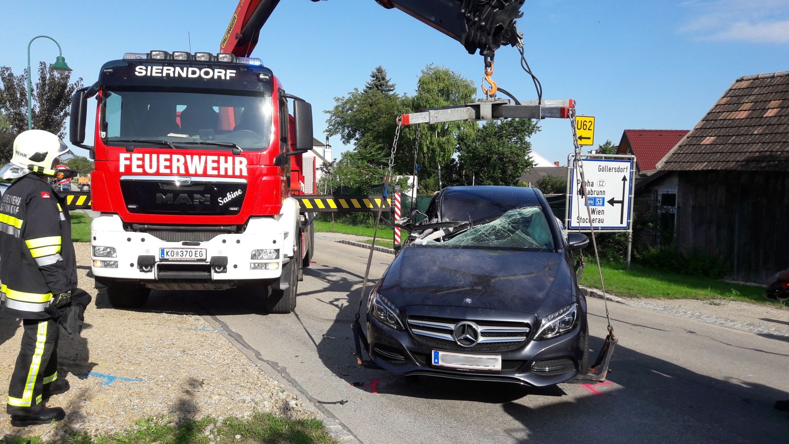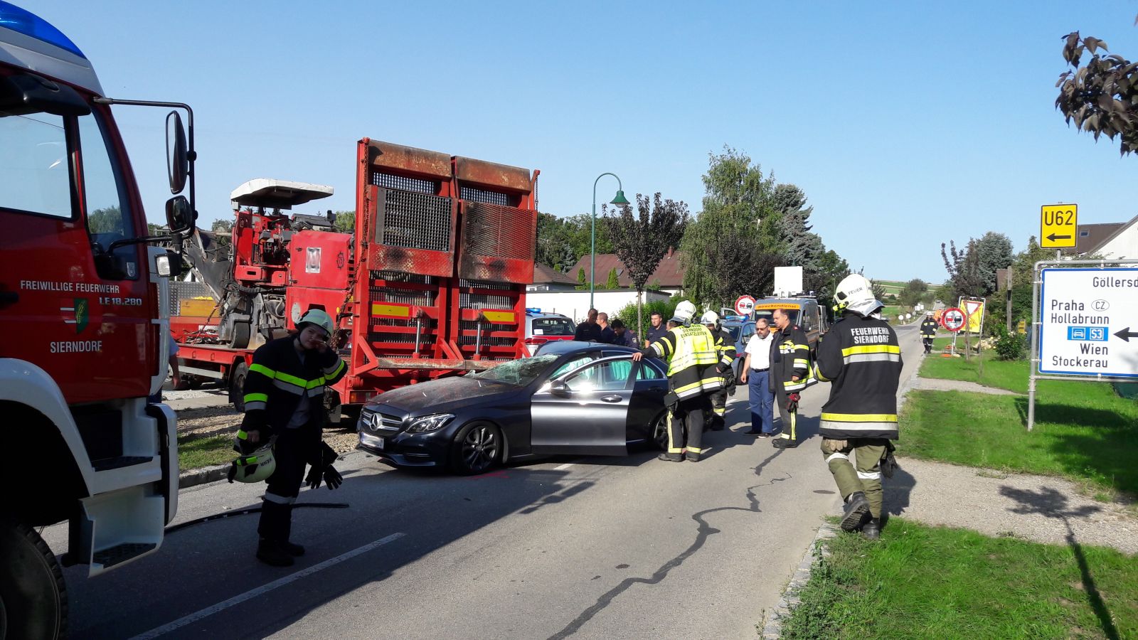 Im Ortsgebiet von Obermallebarn war aus uns unbekannter Ursache ein PKW in den Tieflader eines LKW's gekracht. Nach der Aufnahme durch die Polizei wurde das Fahrzeug mit dem WLFA-Kran abtransportiert und die Unfallstelle gemeinsam gereinigt.