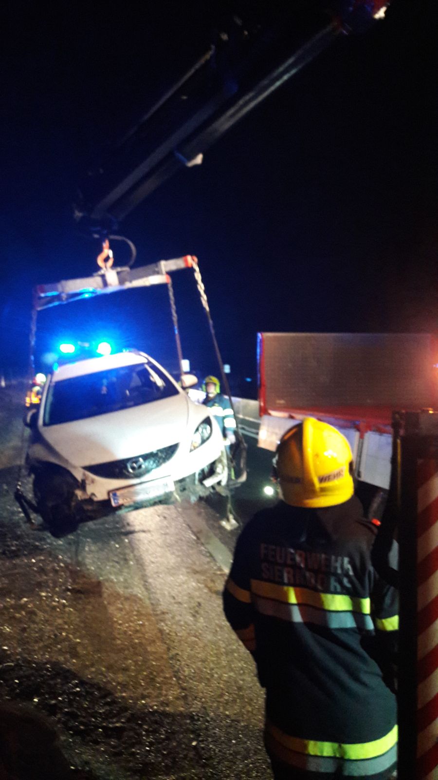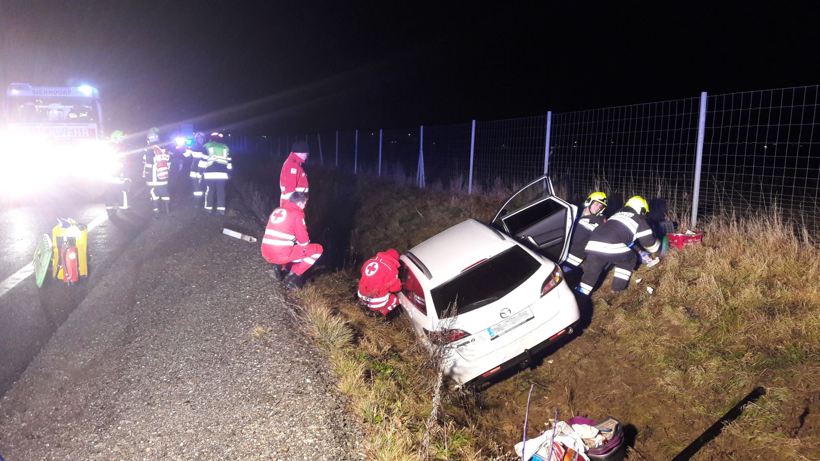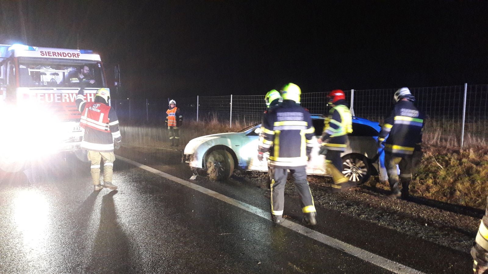 In der Einsatzmeldung wurde uns die Unfallstelle zwischen Obermallebarn und Sierndorf mitgeteilt. Da wir dort keinen Unfall ausmachen konnten fuhren wir auch die Strecke weiter in Richtung Stockerau ab und stießen dort auf das verunglückte Fahrzeug.