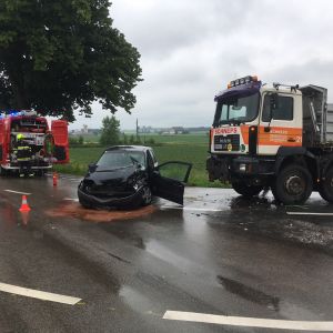 Auf der LH30 bei der Kreuzung nach Oberolberndorf kam ein PKW ins Schleudern und krachte gegen einen LKW. Bei unserem Eintreffen wurde der verletzte PKW-Lenker bereits vom Roten Kreuz versorgt. Der LKW-Fahrer blieb unverletzt.