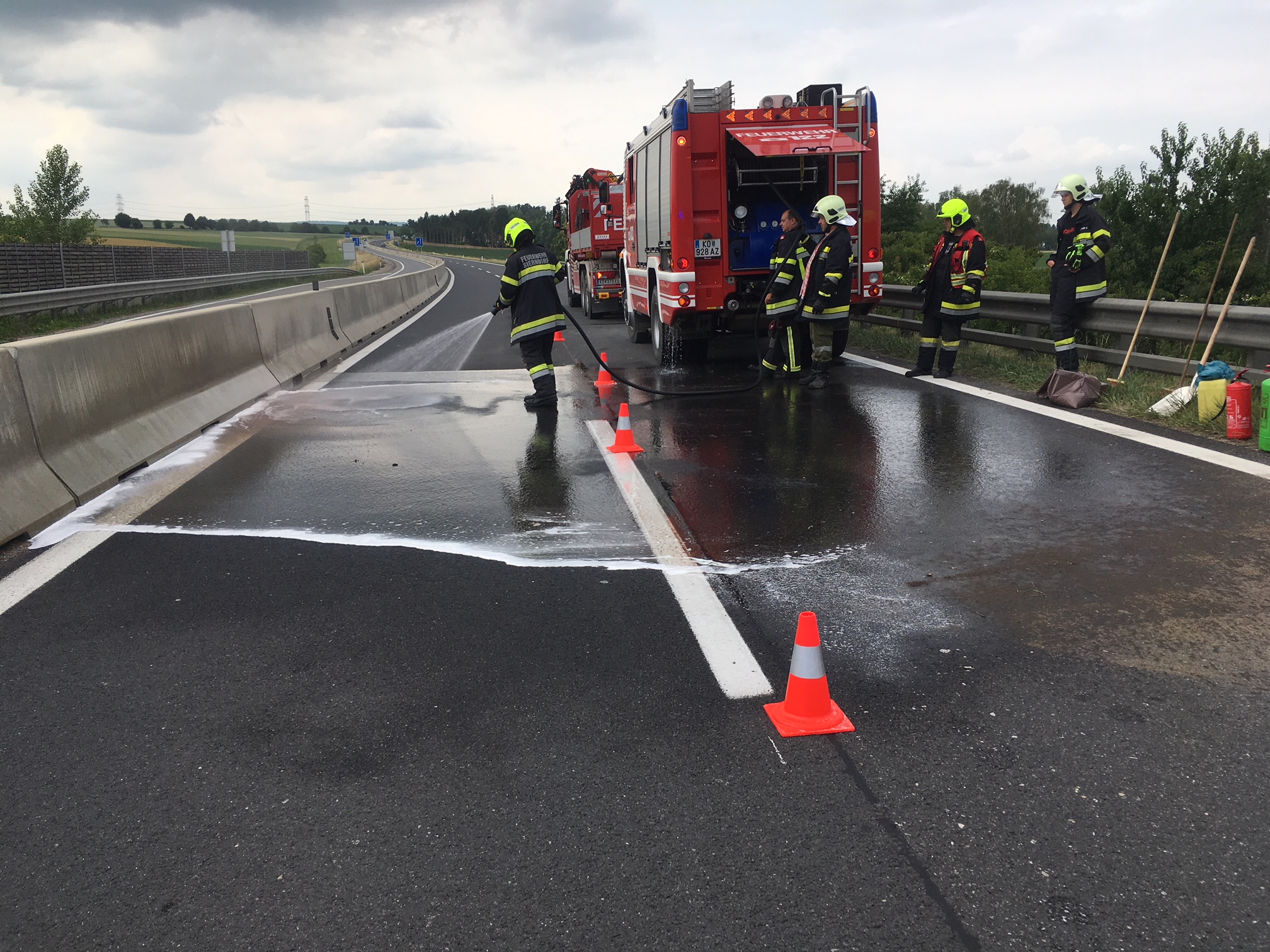 An der Einsatzstelle angekommen sicherten wir das Fahrzeug und brachten Ölbindemittel auf. Nach Freigabe durch die Polizei wurde der PKW auf das Abschleppplateau des WLFA-K verladen und abtransportiert. Mittels HD-Rohr wurde noch die Fahrbahn gesäubert, danach konnten wir wieder einrücken.