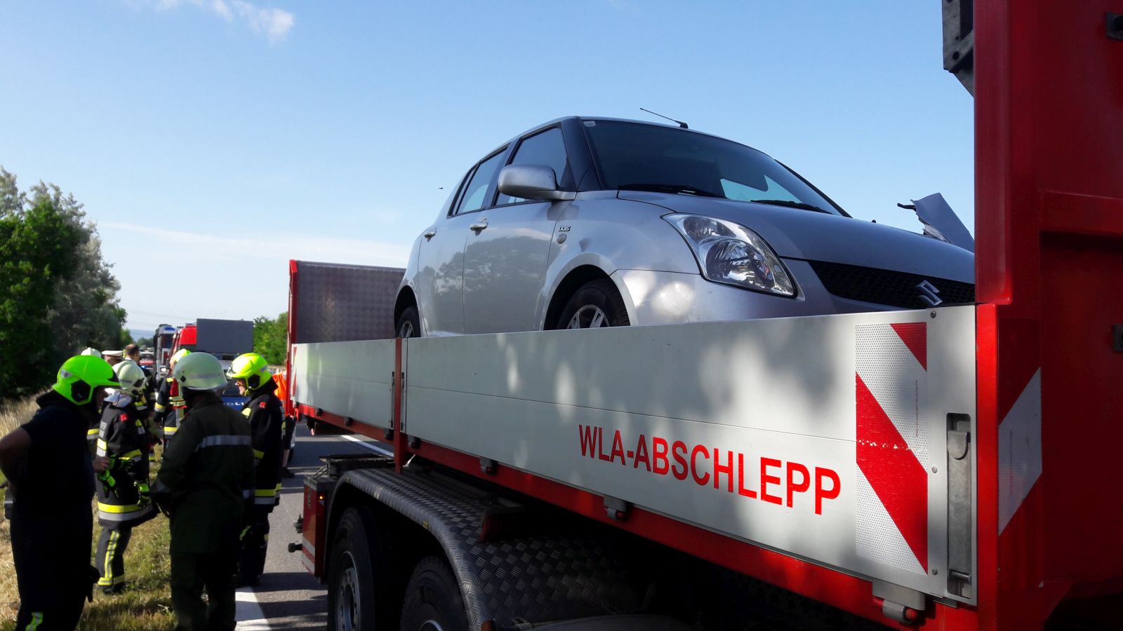 Nachdem die Unfallstelle auf der Richtungsfahrbahn Hollabrunn bereits von der Autobahnpolizei abgesichert war und die Freigabe zum Abtransport erfolgt ist, konnte der PKW sofort mittels Hebekreuz des WLFA-K verladen und von der S3 verbracht werden.