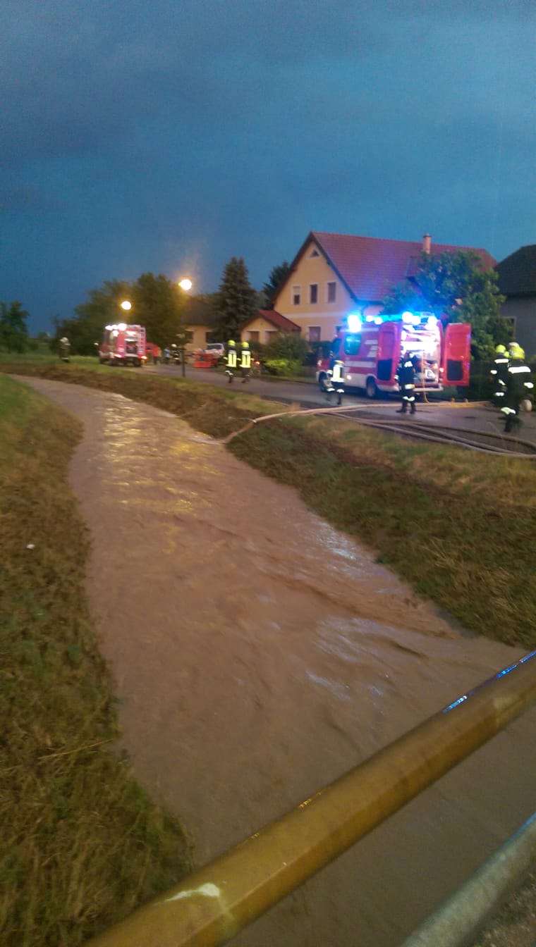 Nach einem starken Unwetter im Raum Oberrußbach/Niederrußbach wurden wir und einige andere Feuerwehren der Umgebung mittels Sirene, Pager und SMS zur Unterstützung der örtlichen Einsatzkräfte alarmiert.