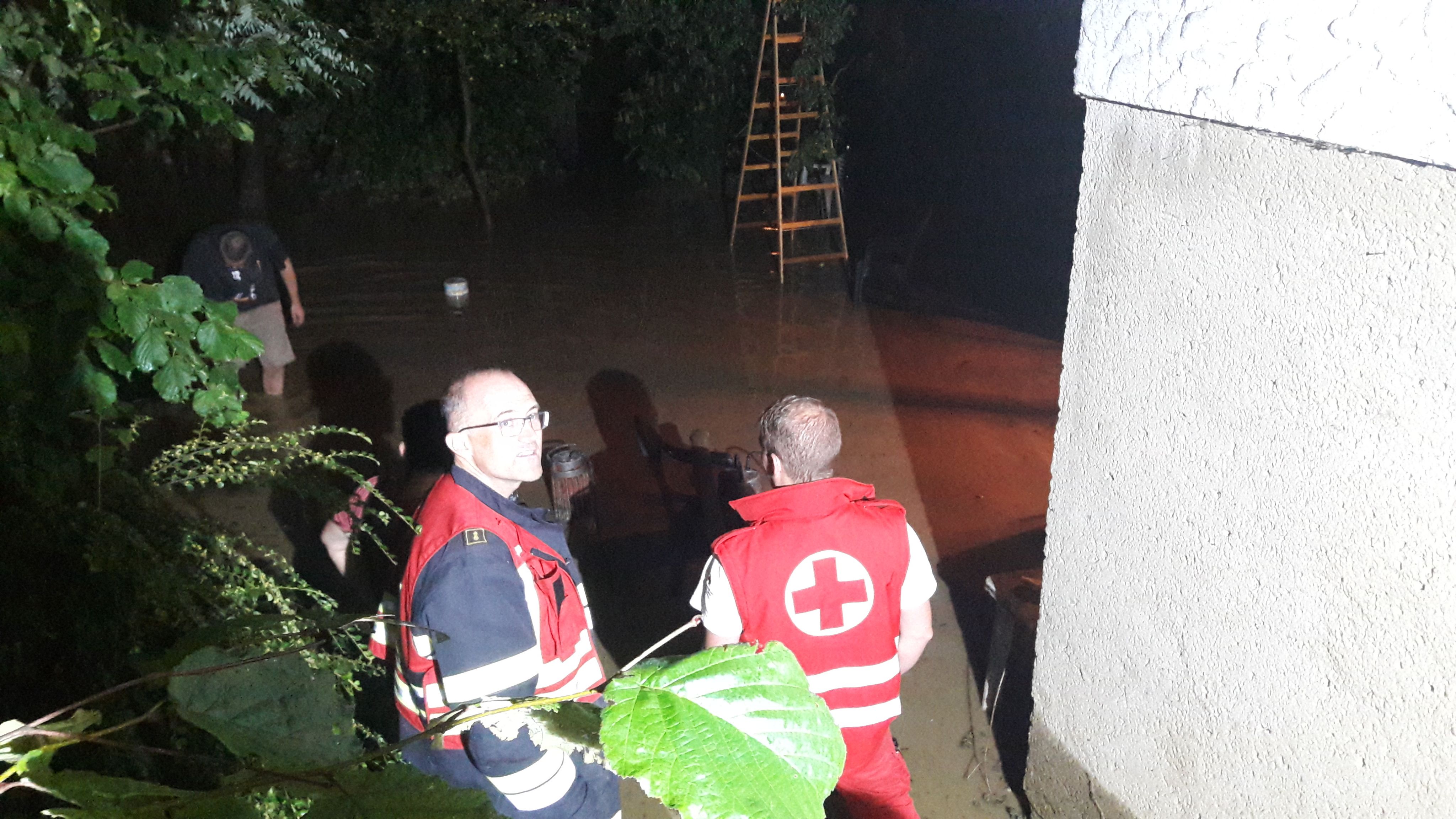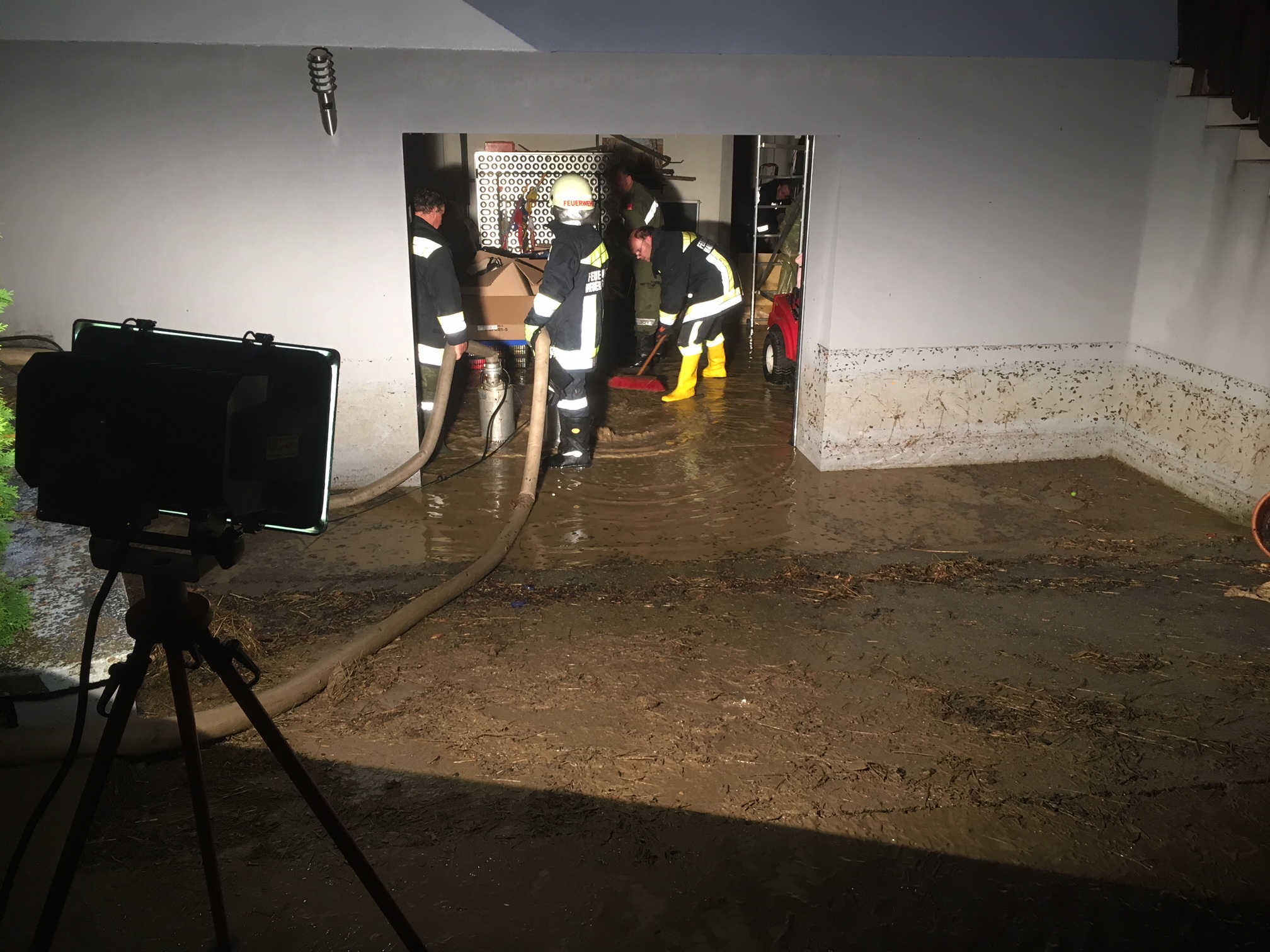 Nach Beendigung dieser Tätigkeiten pumpten wir einen weiteren Garten leer um das Eindringen des Wassers in den Keller zu verhindern.