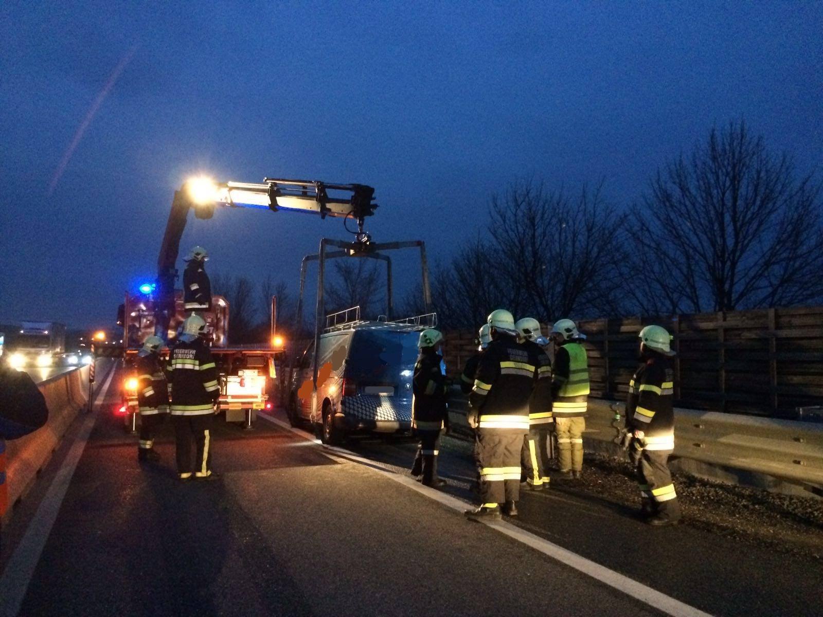 Bei der Abfahrt Obermallebarn hat ein Kastenwagen die Leitschiene touchiert und sich dabei das rechte Vorderrad ausgerissen. Mittels Hebekreuz vom WLFA-K wurde das Fahrzeug abtransportiert.