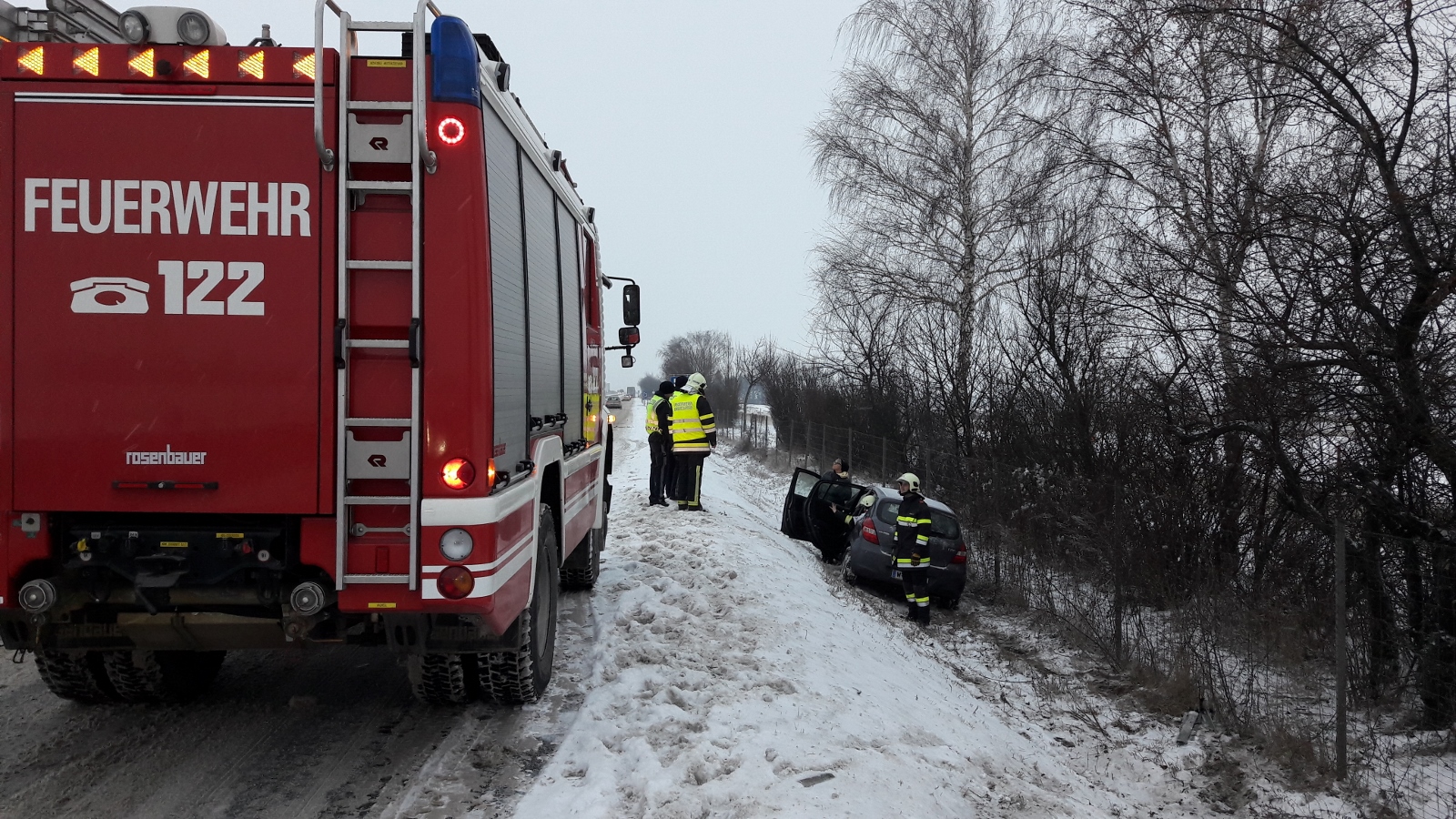 Mittels der Seilwinde des RLFA-2000 wurde das Fahrzeug wieder auf die Straße gezogen. Nachdem es keinerlei Beschädigungen gab, konnte die Fahrerin ihre Fahrt fortsetzen.