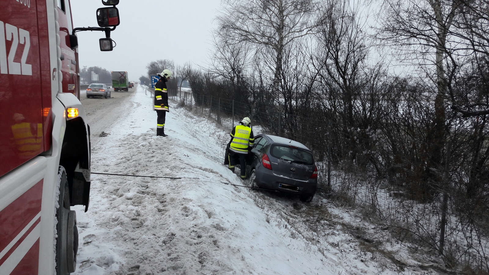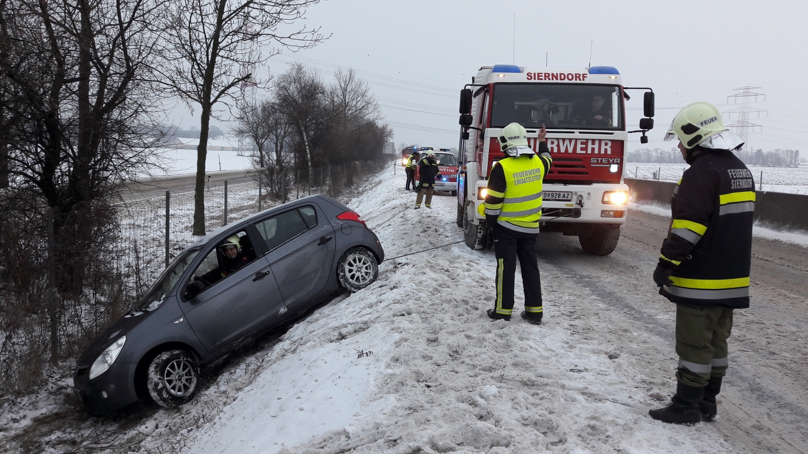 Auf der schneebedeckten S3 kam zwischen Sierndorf und Obermallebarn, Richtungsfahrbahn Hollabrunn, ein PKW von der Strasse ab und rutschte in den Graben.
