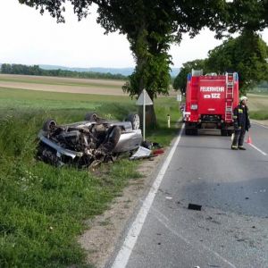 Auf der LH30 Richtung Stockerau prallte ein PKW gegen einen Baum und kam am Dach auf der gegenüberliegenden Straßenseite zu liegen. Der Fahrer wurde zum Glück nur leicht verletzt.