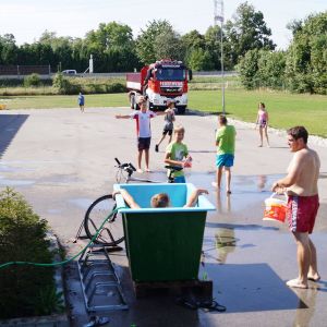 Da es an diesem Wochenende sehr heiß war, erfreuten sich alle an der folgenden Wasserbombenschlacht. Am späten Nachmittag ging der nächste Alarm ein. Diesmal galt es, Personen aus verunfallten Fahrzeugen zu befreien. Auch hier bewies der Feuerwehrnachwuchs, dass bereits viele Handgriffe der „Großen“ ins Blut übergegangen sind. Rasch konnten die gestellten Aufgaben erledigt werden. Nach dem Einsatz wartete bereits ein Lagerfeuer und Gegrilltes zur Stärkung.