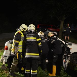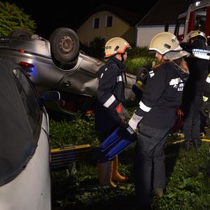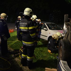 In der Nacht musste eine Menschenrettung nach einem Unfall mit eingeklemmter Person durchgeführt werden.
