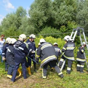 Abschließendes Szenario war dir Rettung eine abgestürzten Person mittels Seilrutsche. Dabei wurde der Umgang mit dem Greifzug und diversen Anschlagmitteln beübt.