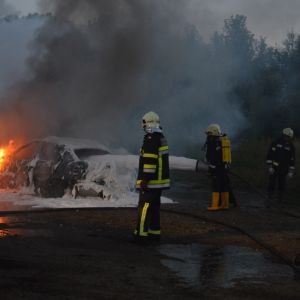 Am frühen Morgen galt es für die Feuerwehrjugend einen Fahrzeugbrand unter Kontrolle zu bringen. Hier wurde ebenfalls wieder mit Schaum gearbeitet.