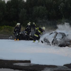 Am frühen Morgen galt es für die Feuerwehrjugend einen Fahrzeugbrand unter Kontrolle zu bringen. Hier wurde ebenfalls wieder mit Schaum gearbeitet.
