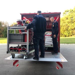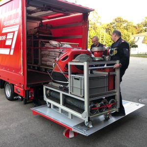 Die Rollcontainer können die bestehenden, in die Jahre gekommenen PKW-Anhänger für Schadstoff-Ausrüstung und die Tragkraftspritze ersetzen. Weitere Container für Schmutzwasserpumpen, Stromerzeuger, Ölbindemittel usw. waren in Planung.