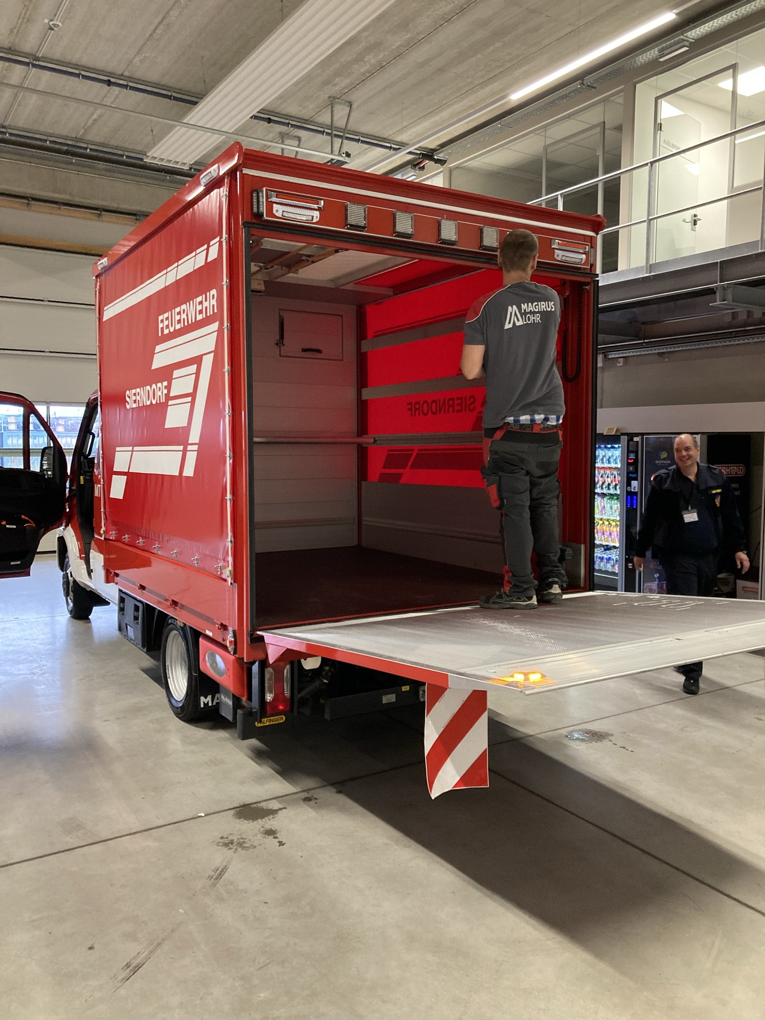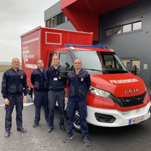 Die erste Baubesprechung mit der Fa. Magirus-Lohr wurde noch im August Corona-bedingt per Videokonferenz abgehalten. Im September 2021 fand die zweite Baubesprechung im neuen Werk der Fa. Magirus-Lohr in Unterpremstätten statt, bei der die Details zum Ausbau fixiert wurden und wir auch die von uns gestellte Ausrüstung anlieferten.