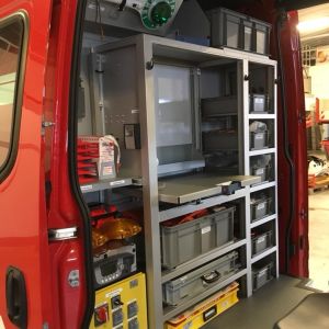 Das Angebot umfasste einen IVECO Daily Kastenwagen mit der entsprechenden Pflichtbeladung lt. NÖ LFV und beinhaltete auch sämtliche Sonderwünsche unsererseits. Für die Stromerzeugung wurde ein Einbaugenerator, der mittels Nebenantrieb geschalten wird, gewählt.