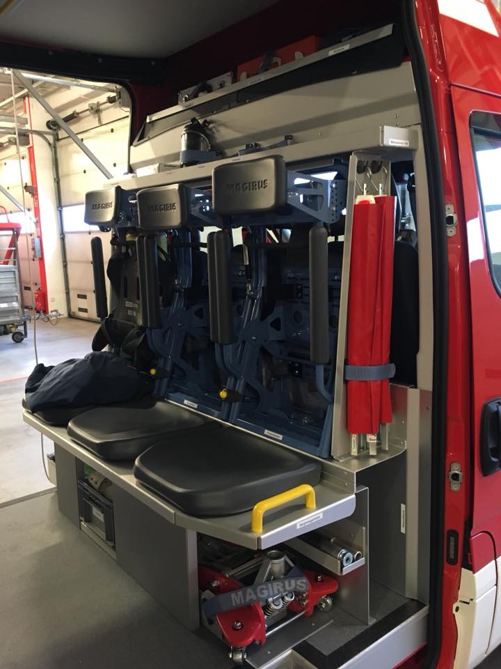 Im Oktober 2017 fand die zweite Baubesprechung bei der Fa. Magirus-Lohr statt, bei der die Details zum Innenausbau fixiert wurden und wir auch die von uns gestellte Ausrüstung anlieferten.
