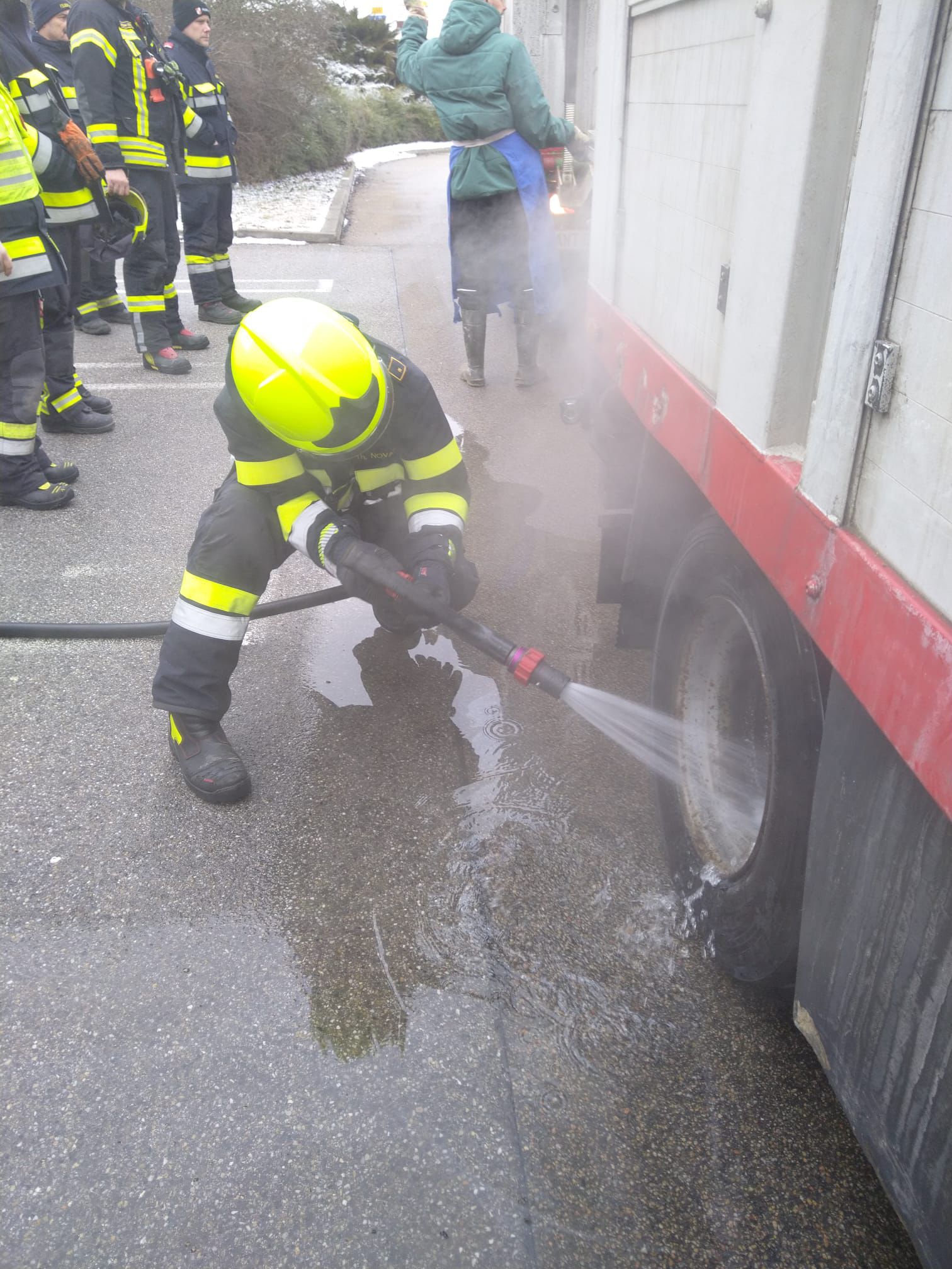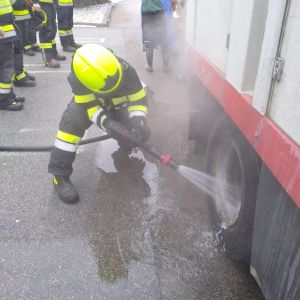 Nach Absicherung der Einsatzstelle wurde das Rad mittels HD-Rohr vom RLFA-2000 abgekühlt.