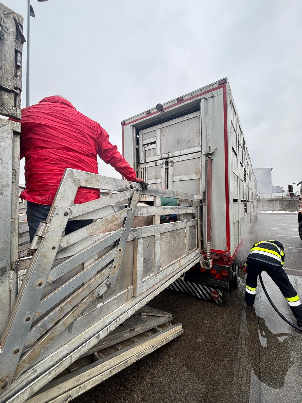 In weiterer Folge wurde der LKW-Zug unter mehrmaliger Kontrolle und Abkühlung zu einem Parkplatz bei der Abfahrt Göllersdorf geleitet, wo die Schweine in einen Ersatz-LKW umgeladen wurden.