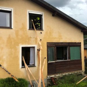 Die bereitstehende Drehleiter und der Überdruckbelüfter wurden zum Glück nicht benötigt. Insgesamt standen 6 Feuerwehren mit 11 Fahrzeugen und ca. 70 KameradInnen im Einsatz. Nach etwa 2h konnte "Brand aus" gegeben werden. Im Anschluss wurden die benötigten Geräte wieder versorgt und die Einsatzbereitschaft hergestellt.