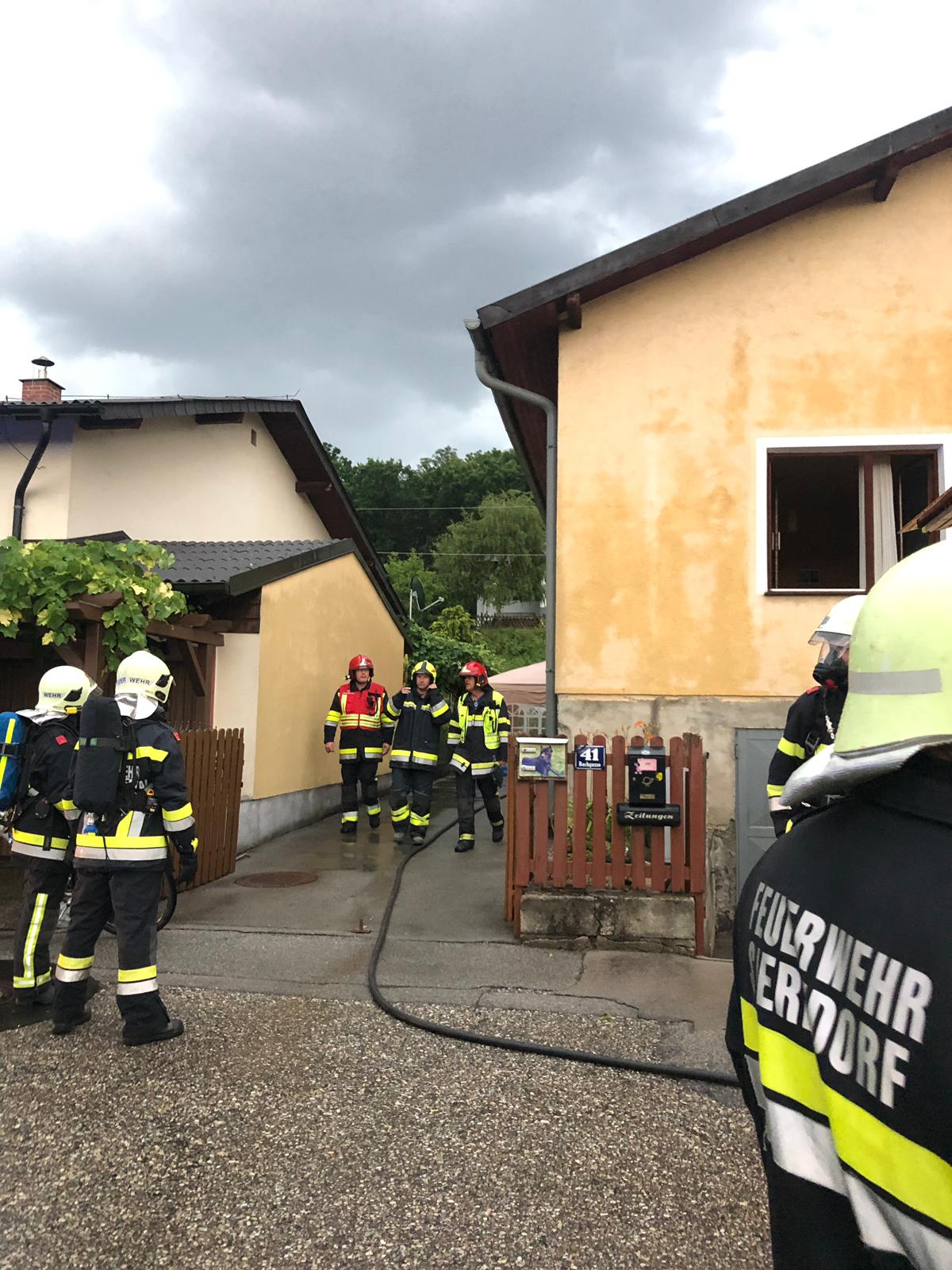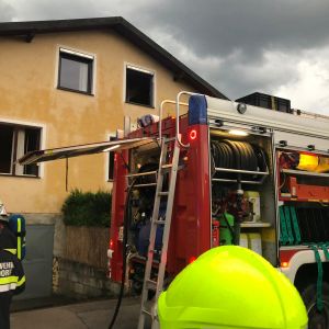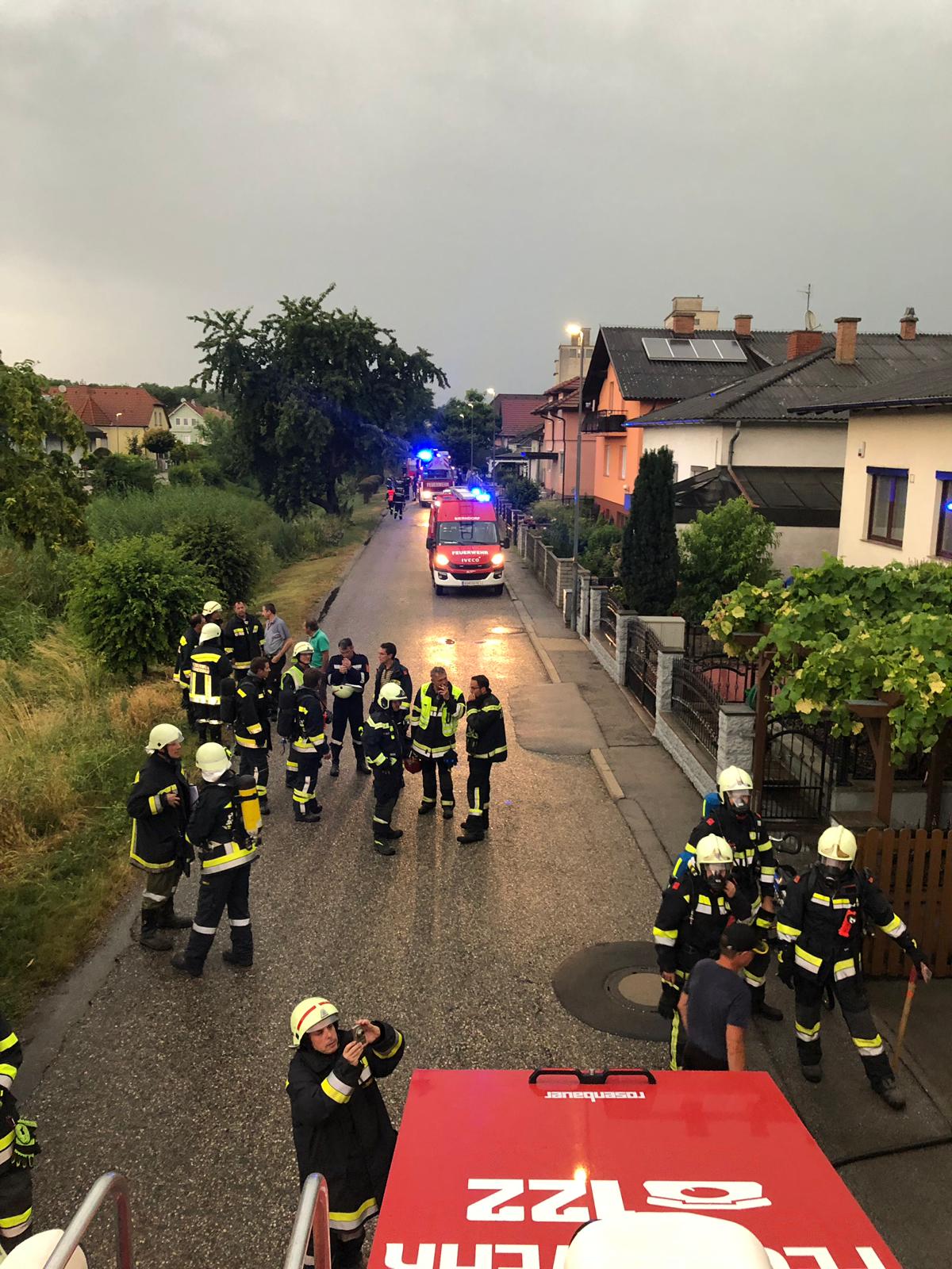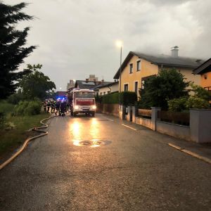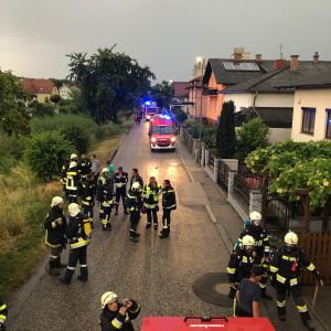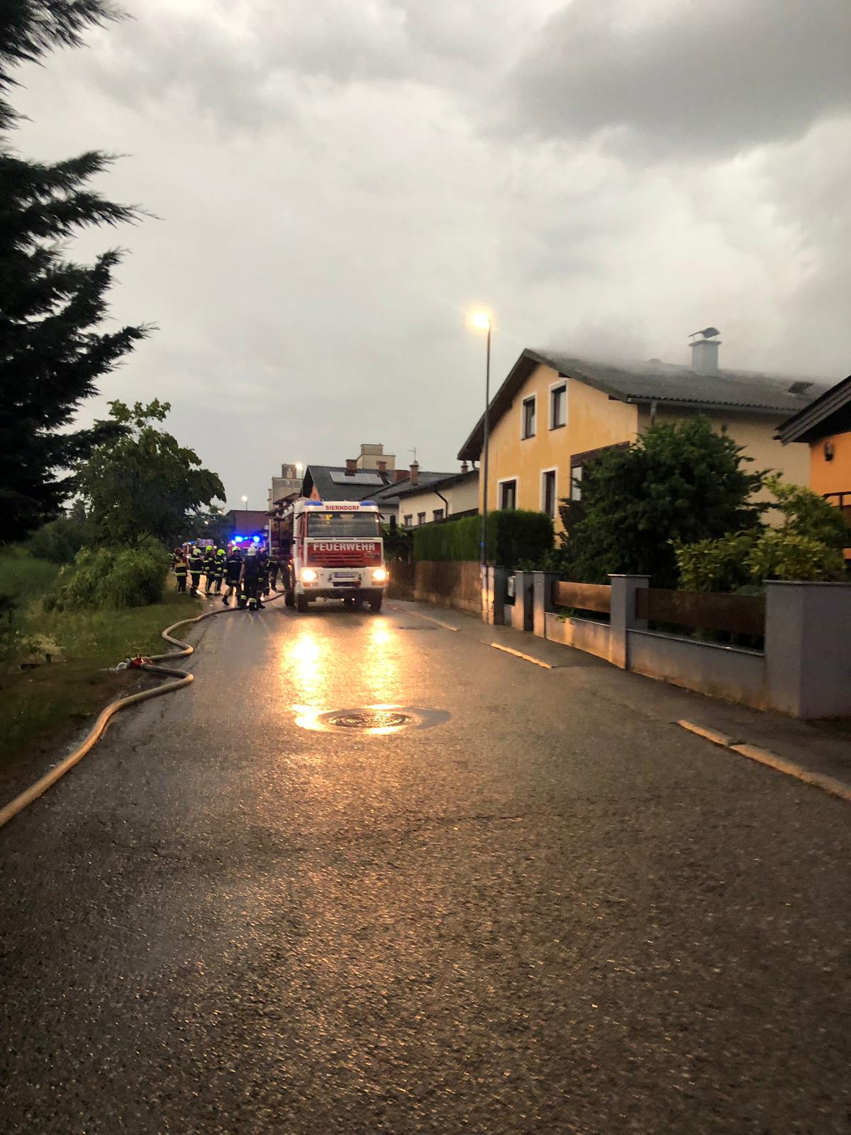 Brandverdacht - B1 - hieß es in der ersten Meldung die uns am Montagabend nach einem Gewitter erreichte. Nachdem aber bei der Alarmzentrale mehrere Anrufe eintrafen wurde die Alarmstufe bereits bei unserer Anfahrt auf Dachstuhlbrand - B3 - erhöht und auch andere Feuerwehren der Gemeinde sowie die Drehleiter Stockerau zur Unterstützung nachalarmiert.