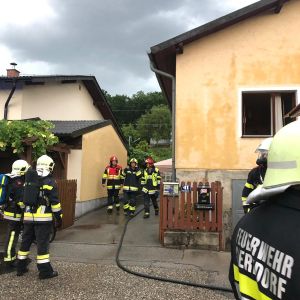 Tatsächlich gab es beim Eintreffen des ersten Fahrzeuges bei einem Einfamilienhaus großflächige Rauchentwicklung am Dach. Sofort wurde ein Atemschutztrupp ausgerüstet und mit einer HD Löschleitung zur Brandbekämpfung ins Obergeschoss geschickt. Zeitgleich wurde begonnen die Wasserversorgung mit einer Leitung vom nächsten Hydranten sicherzustellen. Nach und nach trafen auch die anderen Feuerwehren ein und stellten weitere Atemschutztrupps zur Seite bzw. halfen beim Aufbau der Wasserversorgung.