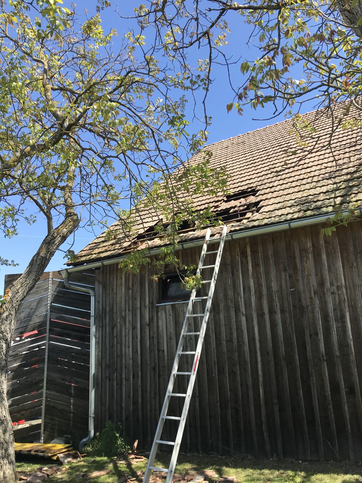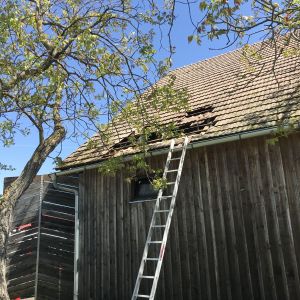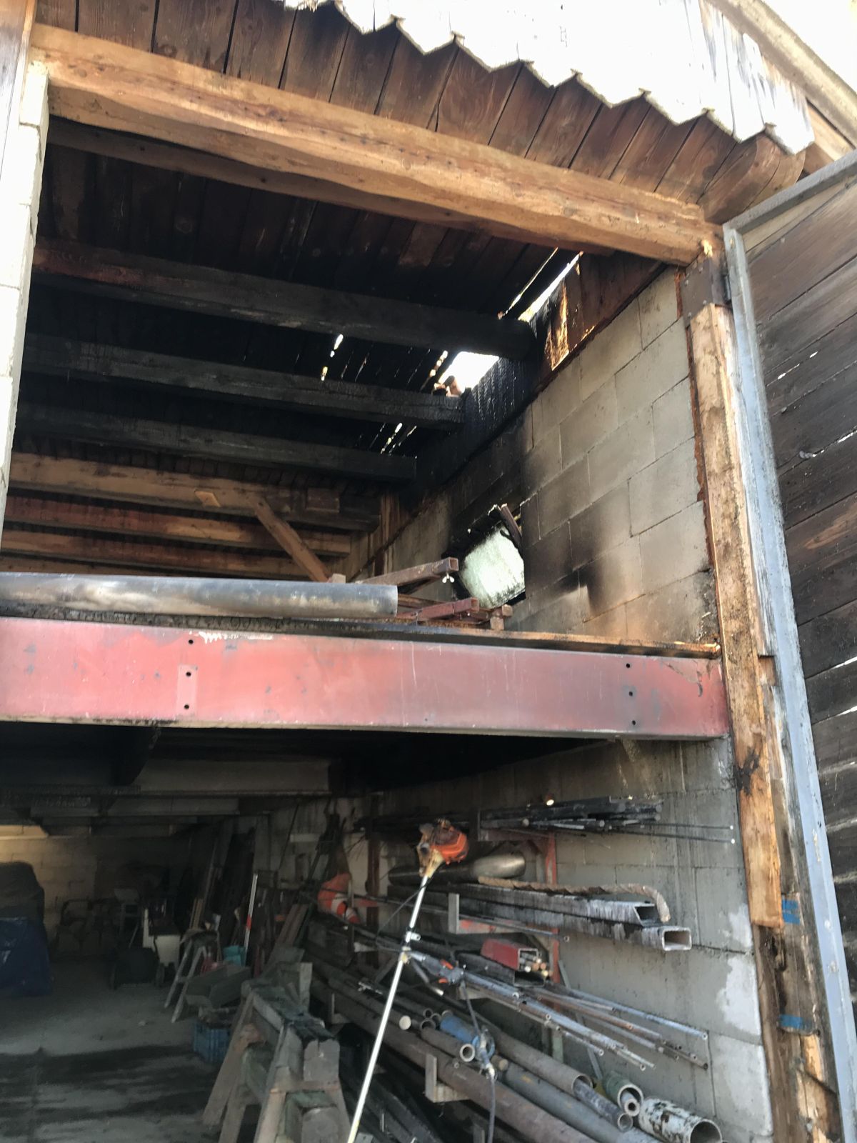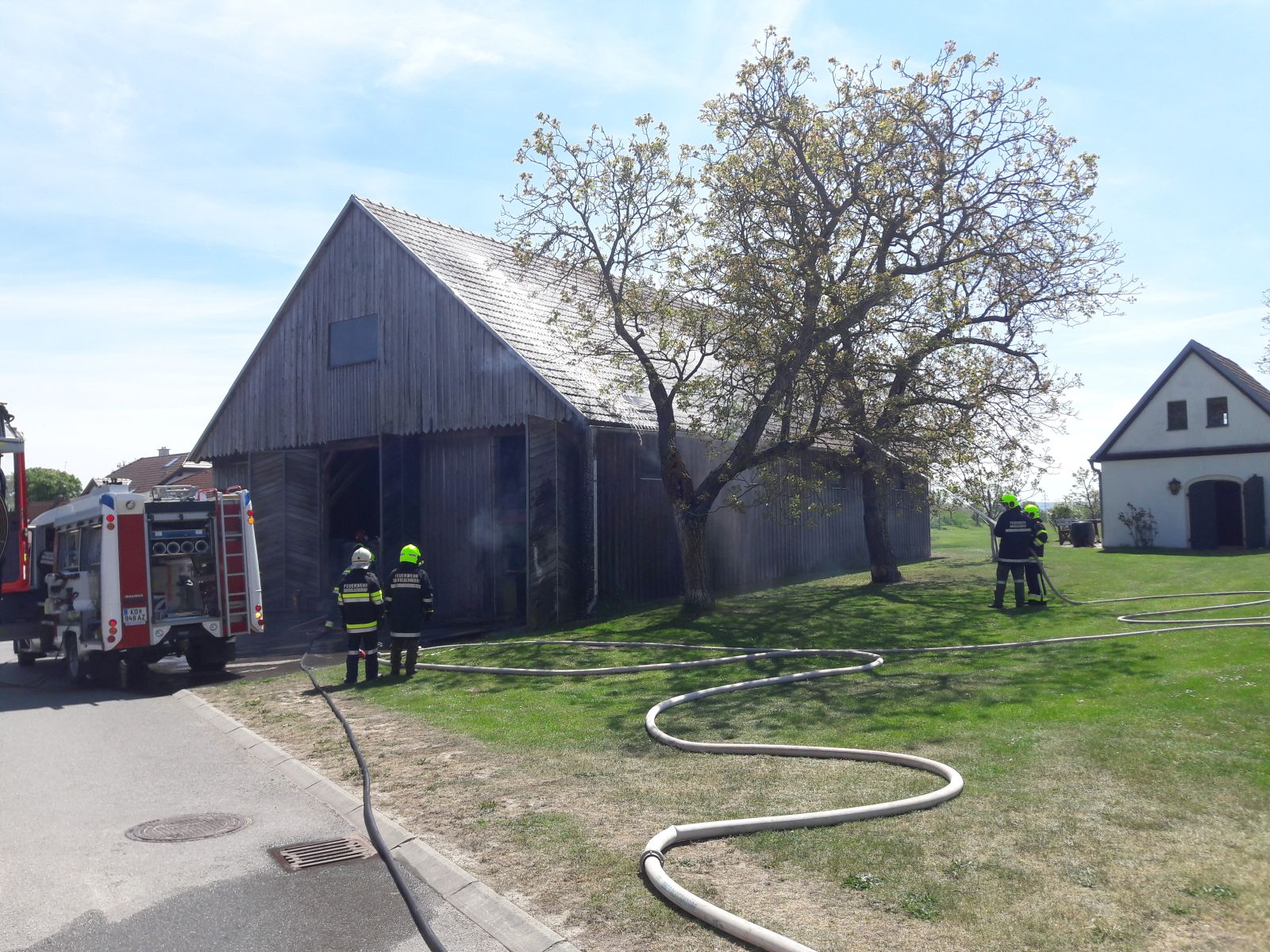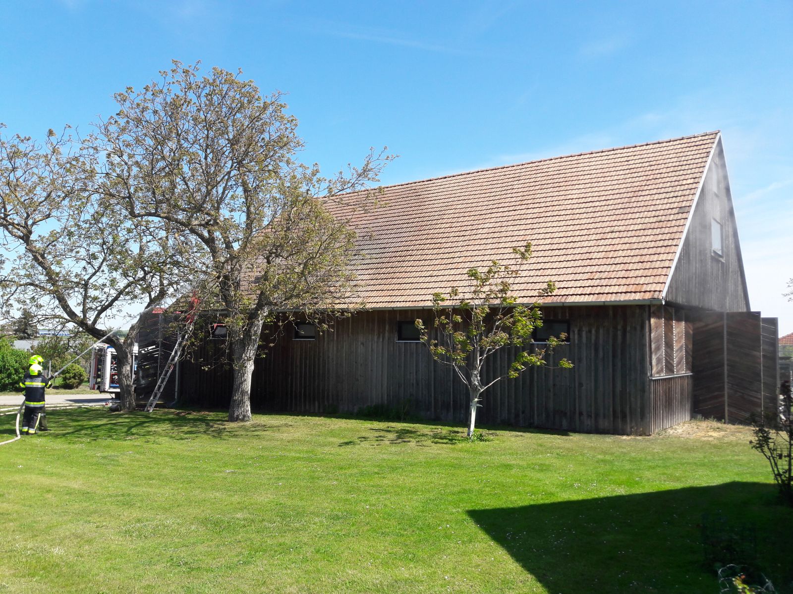 Am Zwischenboden der Scheune kam es zu einem Brand von Holzbrettern, das Feuer breitete sich auf die Scheunenwand und die Dachkonstruktion aus.