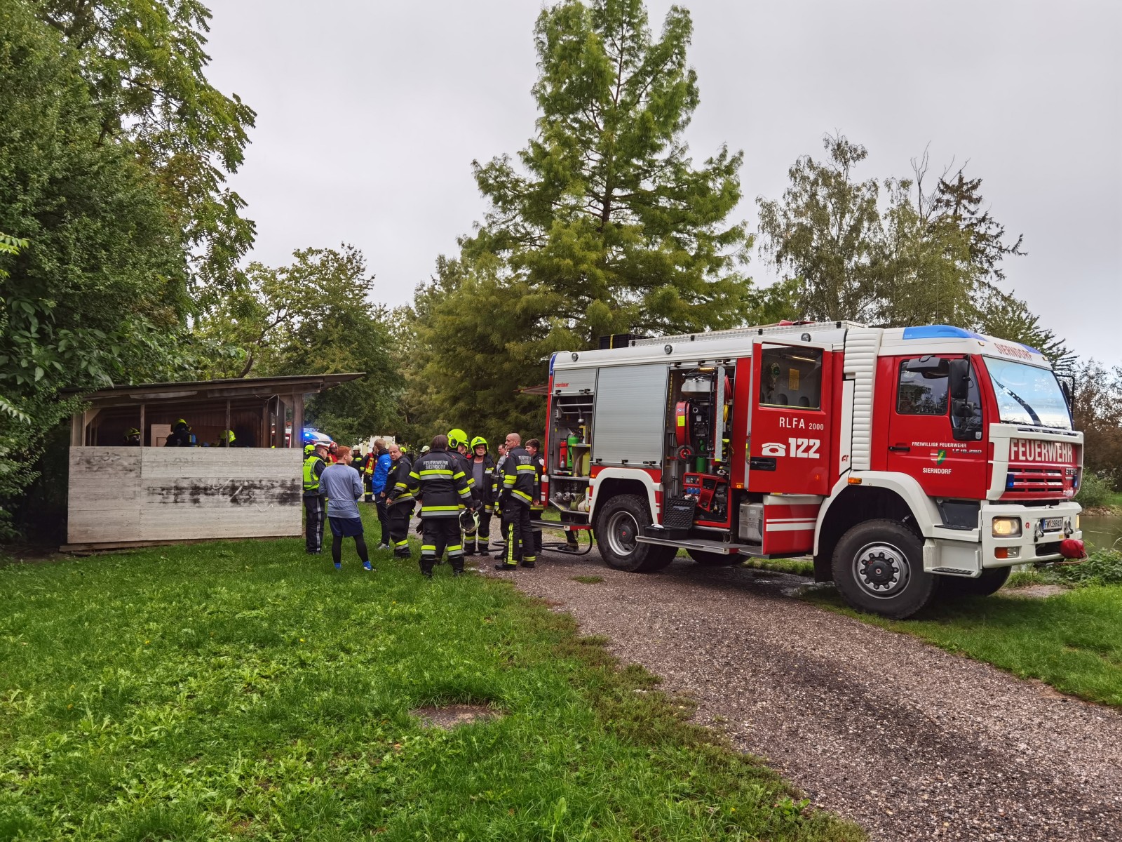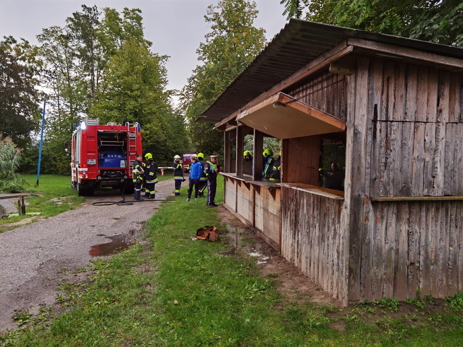 Eine aufmerksame Spaziergängerin bemerkte bei einer Holzhütte am Sierndorfer Teich starke Rauchentwicklung und verständigte die nebenan trainierenden Mitglieder des Sportvereins.