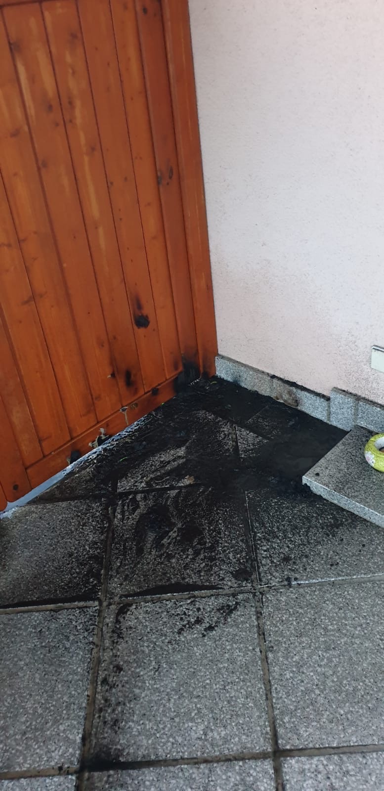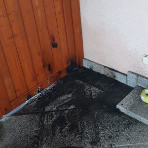 Wir führten letzte Nachlöscharbeiten durch, entfernten die Brandreste von der Terrasse und kontrollierten die Wärmeausbreitung mit der Wärmebildkamera.