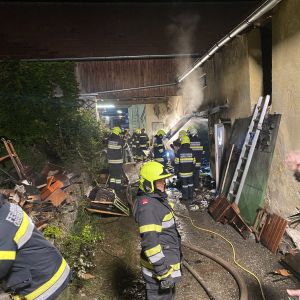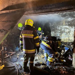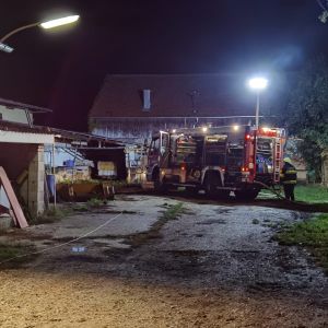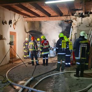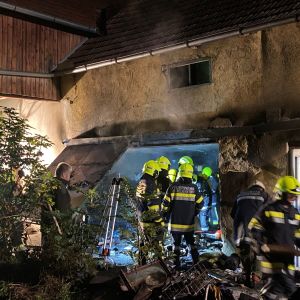 In einem Lagerraum eines landwirtschaftlichen Gebäudes mitten im Ortszentrum kam es zu einem Brand. Nachbarn wurden auf Explosionsgeräusche aufmerksam und informierten den Hausbesitzer, welcher sofort die Feuerwehr alarmierte und mit Feuerlöschern versuchte den Brand einzudämmen.