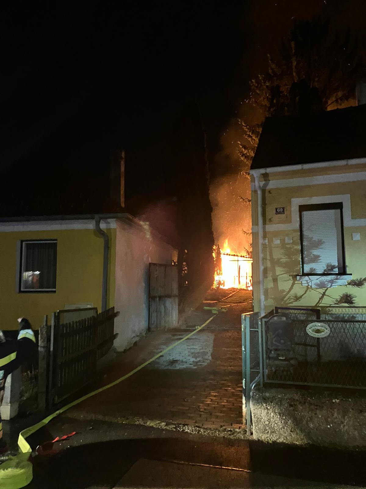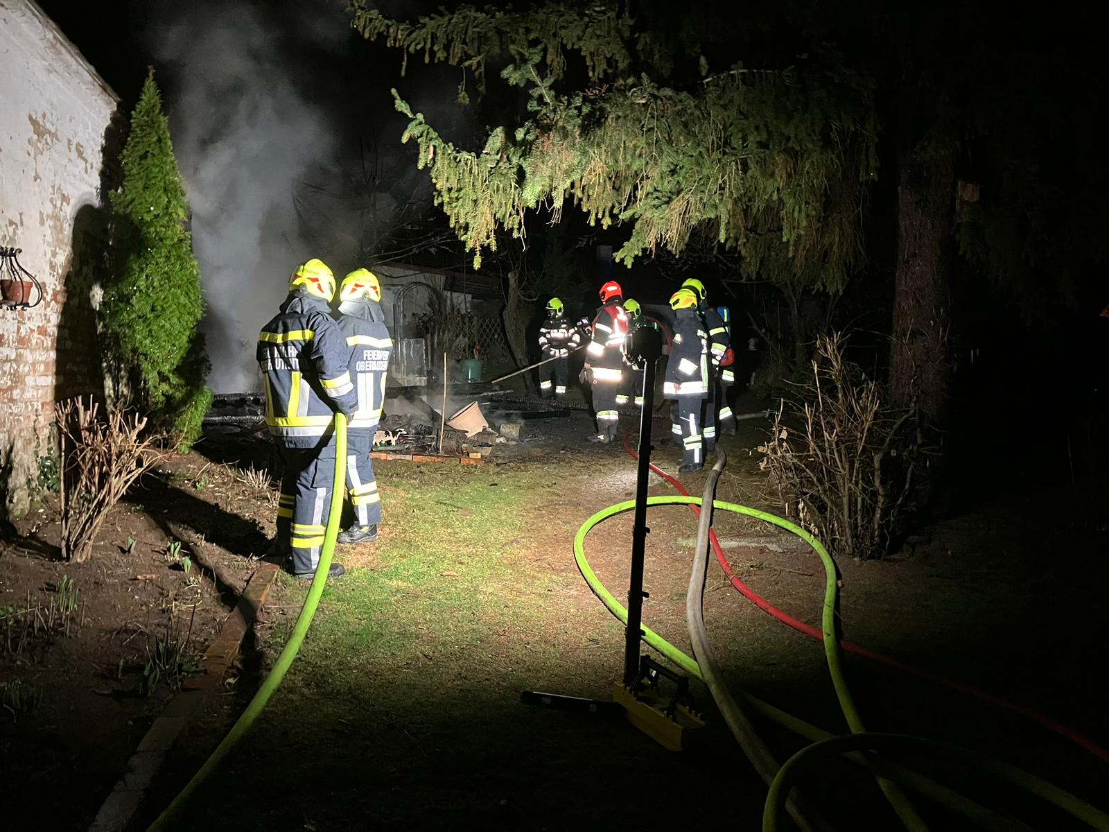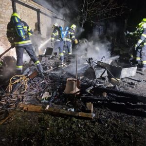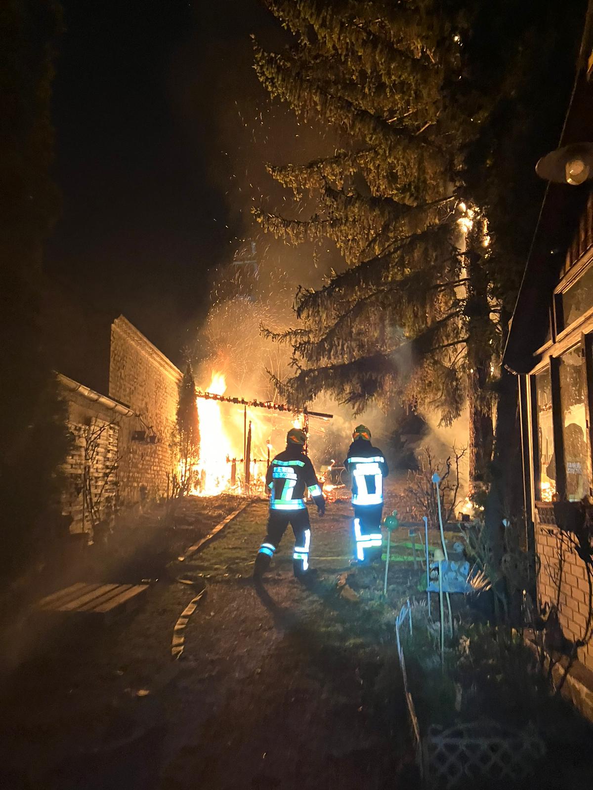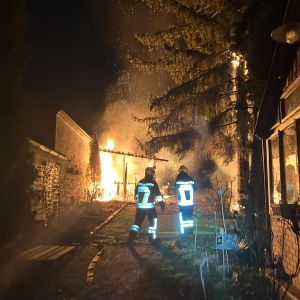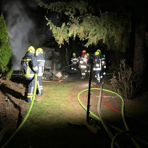 Beim Eintreffen der FF Oberhautzental wurde festgestellt, dass in einem Garten ein Geräteschuppen in Vollbrand stand und auch der danebenstehende Baum bis zu einer Höhe von ca. 7 m brannte.