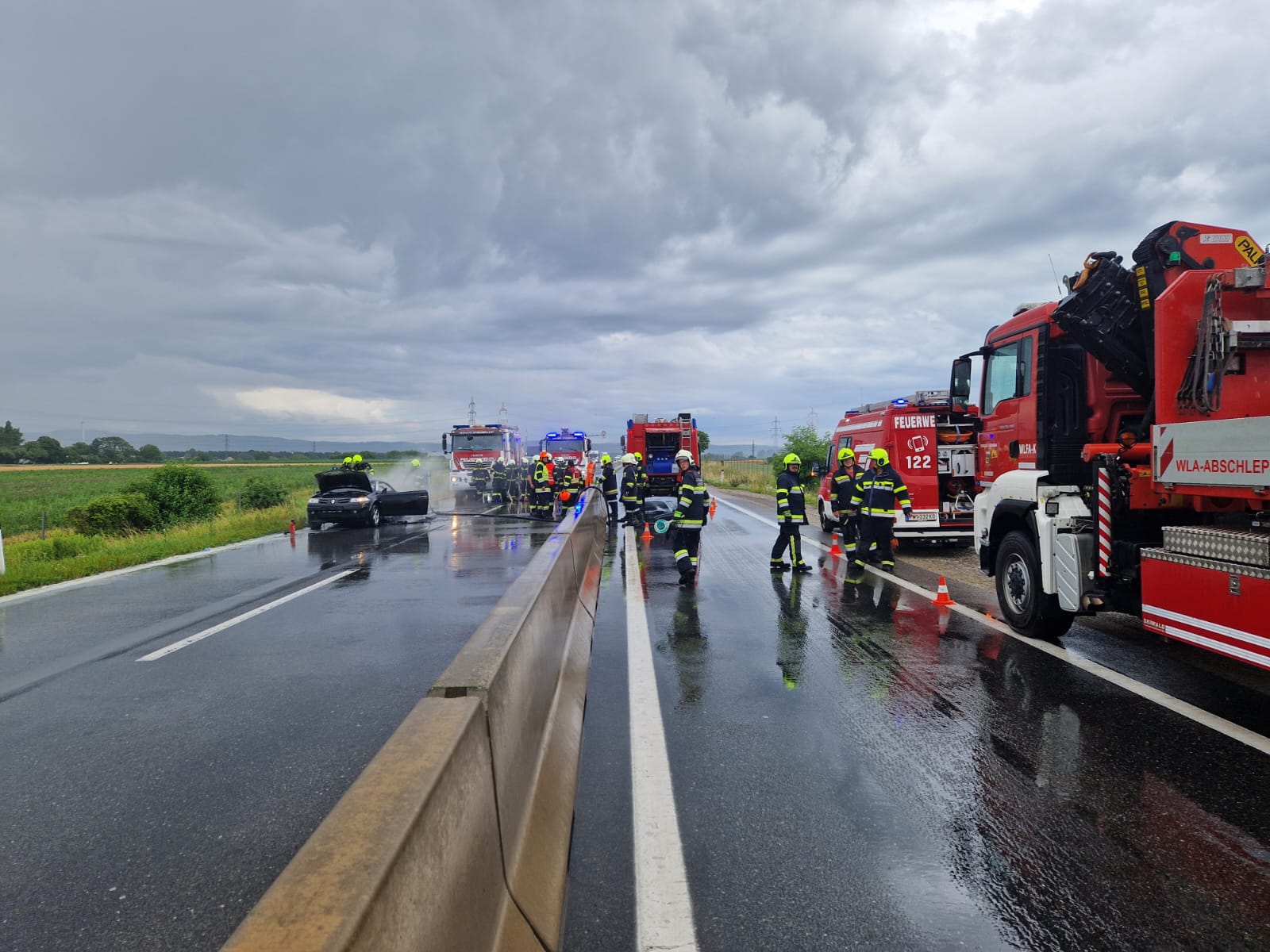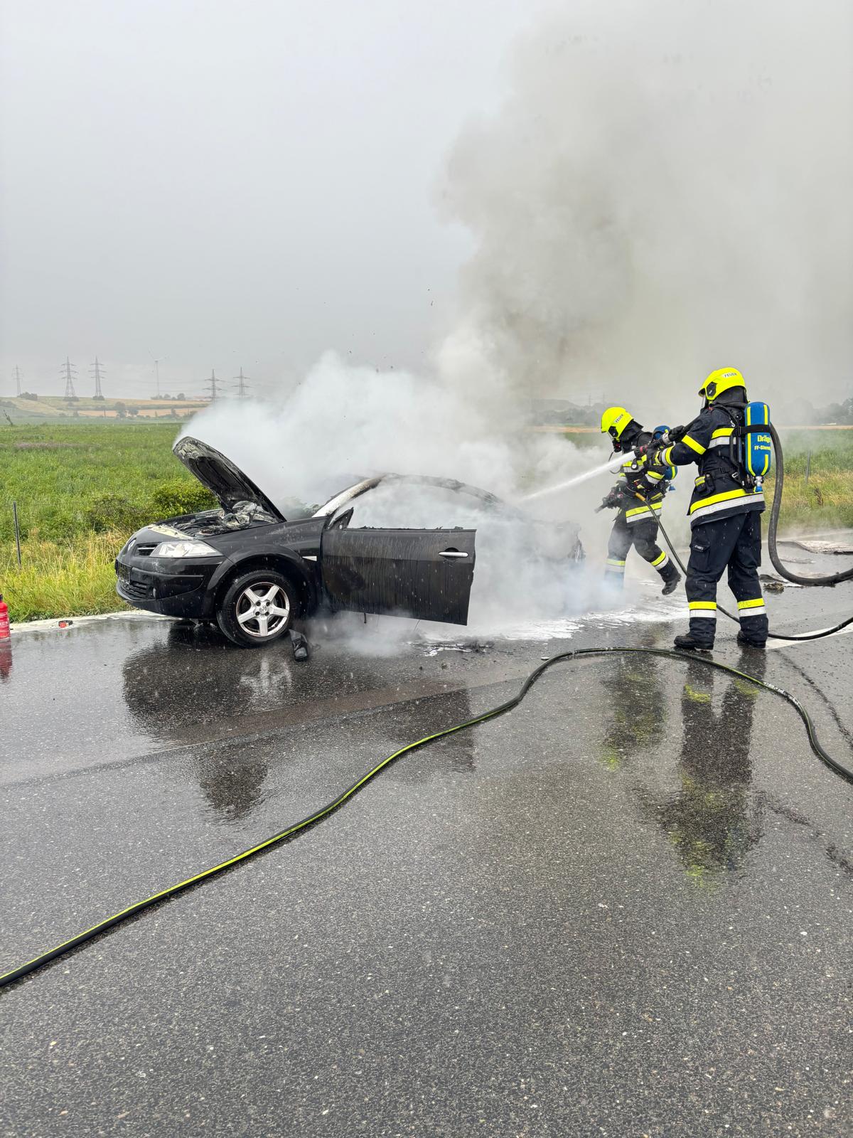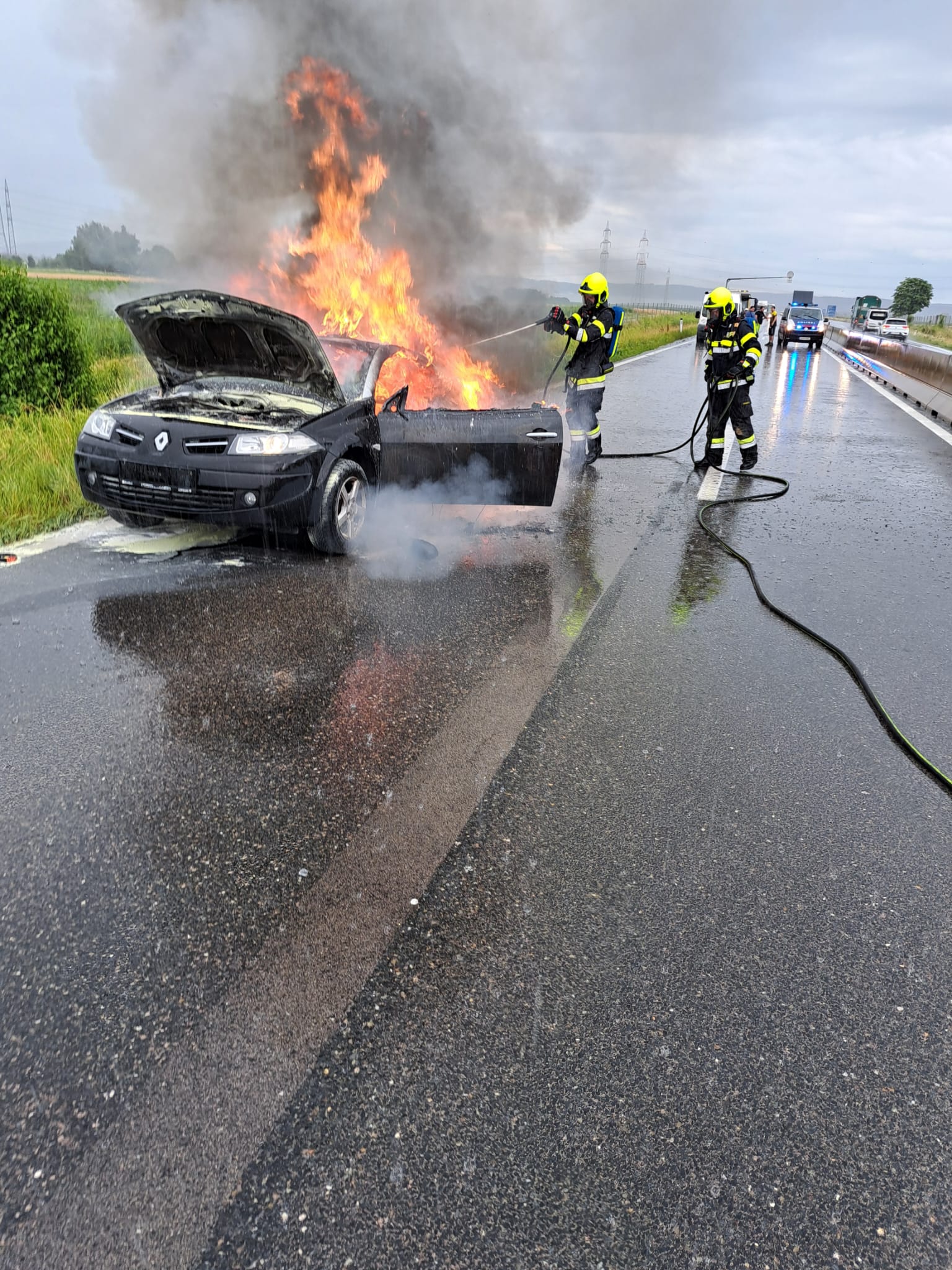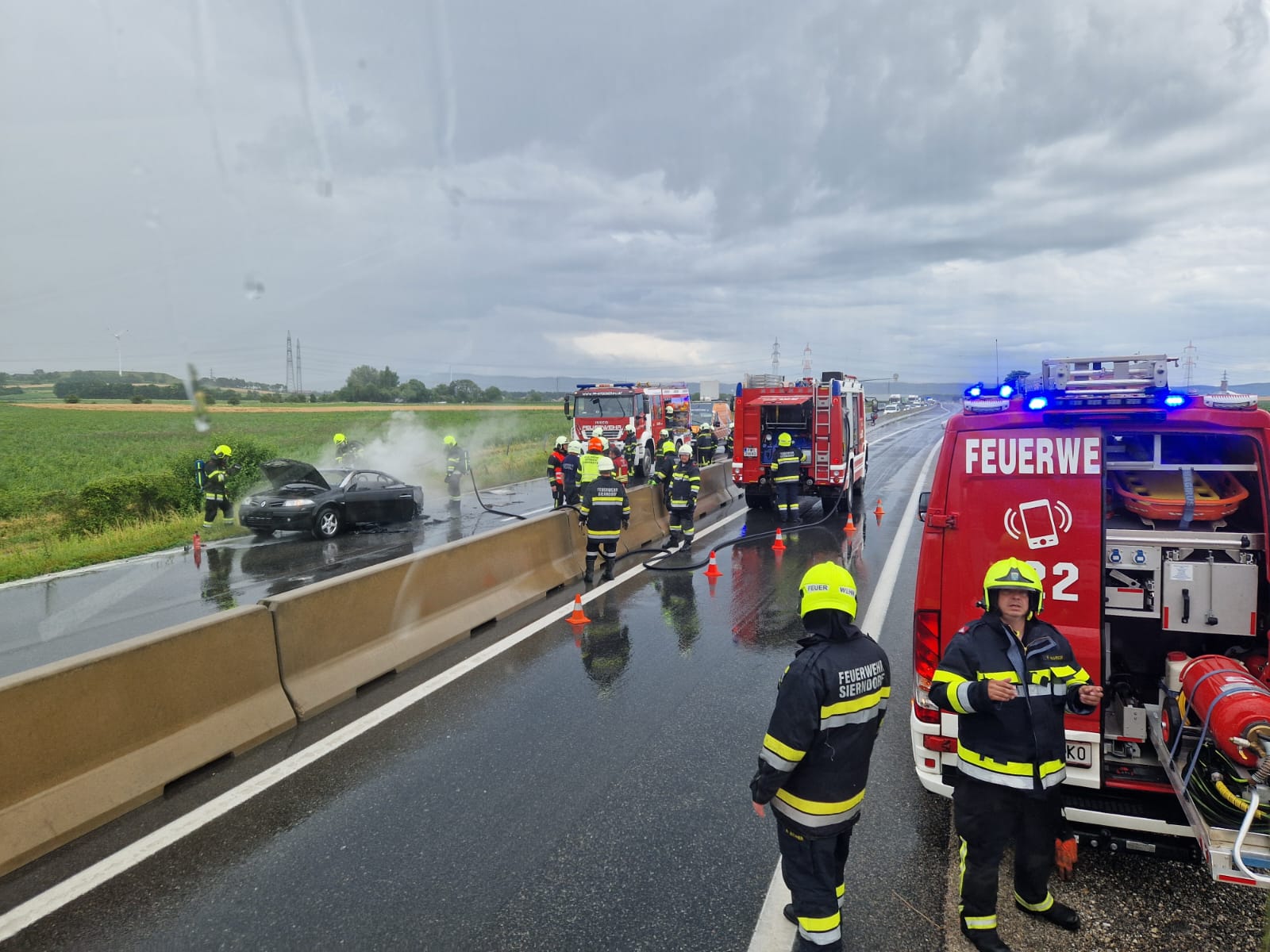 Mittwoch Nachmittag wurden wir gemäß Alarmplan gemeinsam mit der FF Stockerau zu einem Fahrzeugbrand auf die Schnellstrasse S3, RiFb. Kleinhaugsdorf zwischen Stockerau und Sierndorf alarmiert.