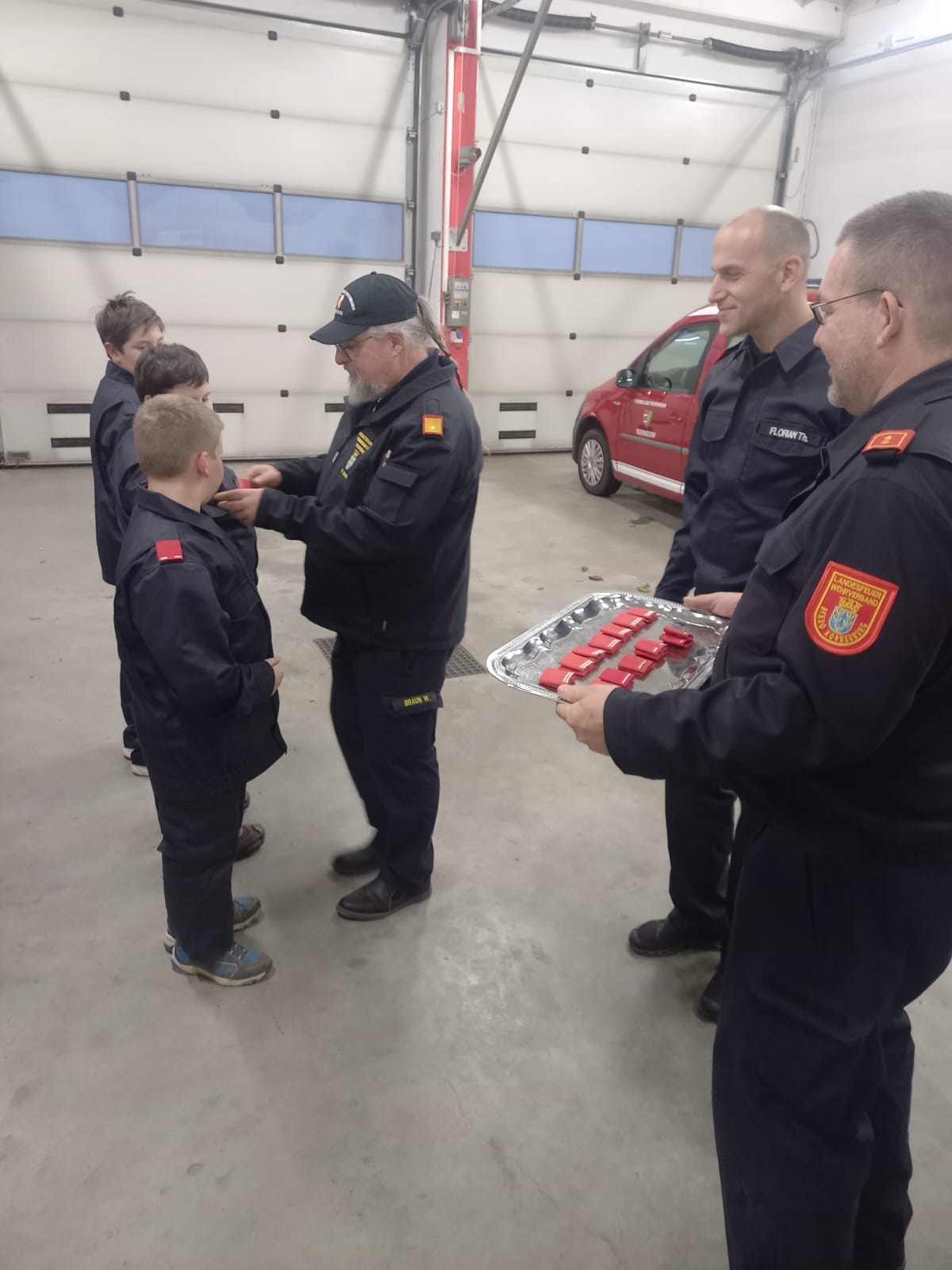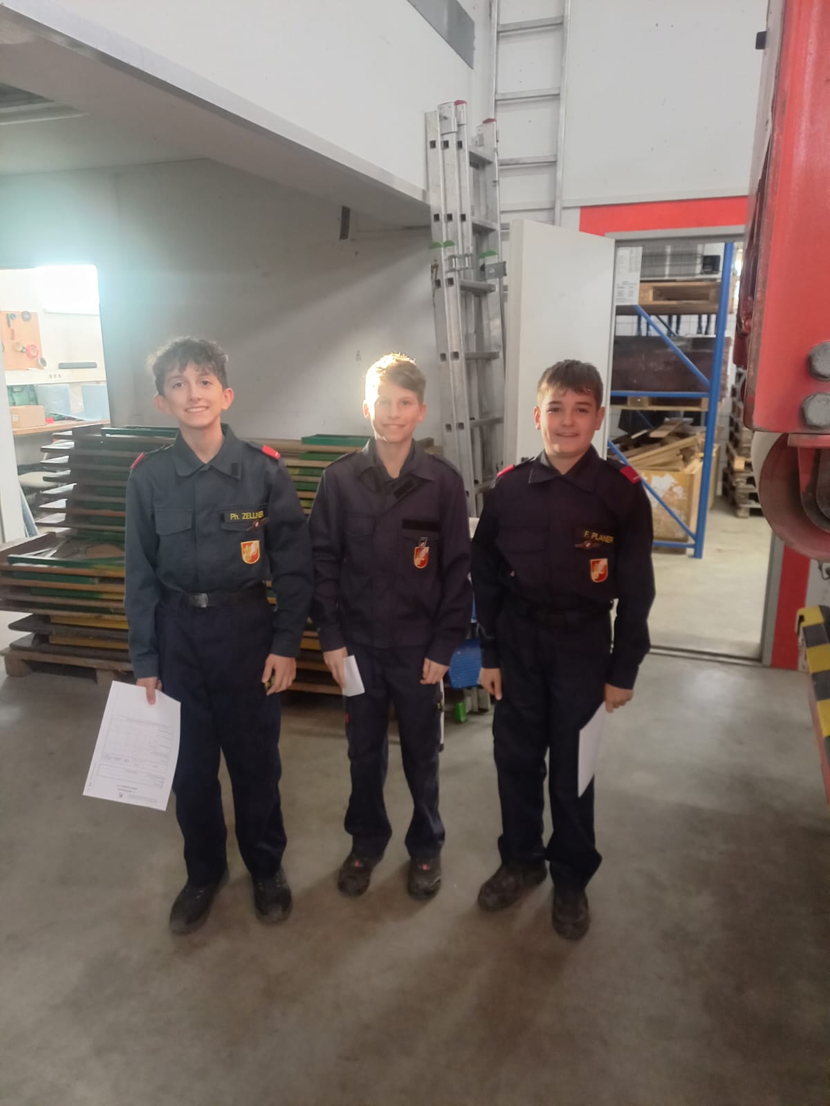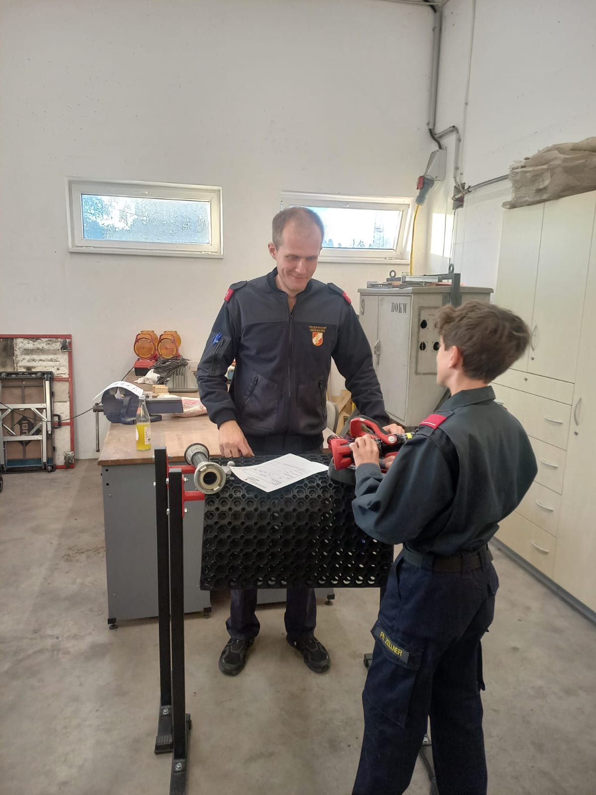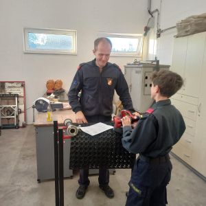 Dabei müssen die Kids sowohl theoretische Fragen beantworten, als auch Geräte für den technischen Einsatz und den Brandeinsatz im Fahrzeug finden und deren Verwendungszweck erklären.