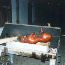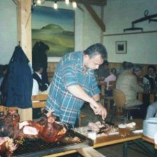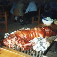 Inzwischen wurde zu Hause bereits das Abendessen in Form eines Spanferkels vorbereitet. Dieses wurde dann auch fachgerecht vom "Koch" Franz Leidwein zerlegt und serviert.