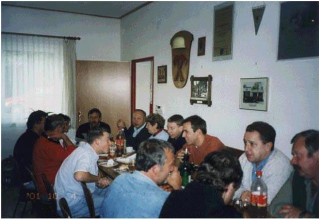 Für den Abend wurde uns von der Familie Resinger das Heurigenlokal "Zur Zenzi" für ein gemütliches Zusammensein zur Verfügung gestellt. Bei Blunzngröstl und Leberwurst fand man genug Zeit für Gespräche und Erinnerungen an die nunmehr bereits 22 Jahre dauernde Freundschaft.