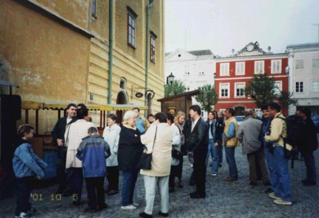 Nach dem Mittagessen stand ein Empfang beim Bürgermeister auf dem Programm. Dieser erzählte und in liebenswürdigerweise die Geschichte von Retz. Anschließend ließen wir uns noch einige Gebäude auf dem schönen Hauptplatz erklären.