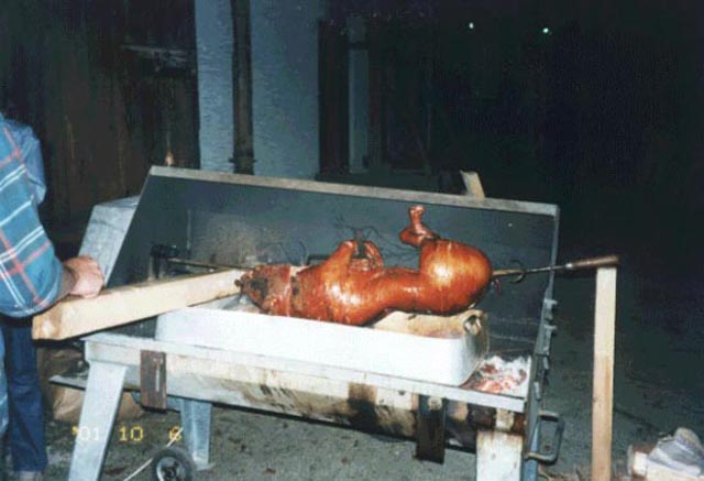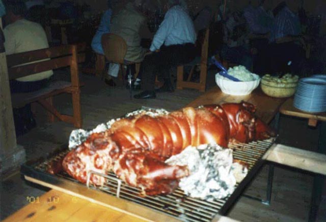 Inzwischen wurde zu Hause bereits das Abendessen in Form eines Spanferkels vorbereitet. Dieses wurde dann auch fachgerecht vom "Koch" Franz Leidwein zerlegt und serviert.