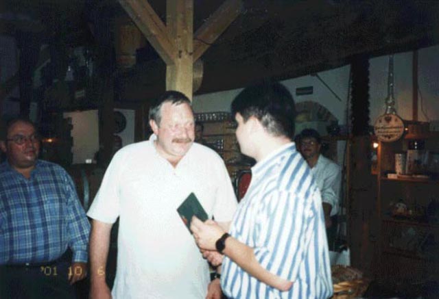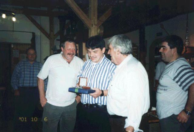 Nach dem Abendessen erfolgten noch einige Ansprachen. Dabei erhielt der bei der Gründung der Freundschaft zuständige Kommandant der FF Sierndorf, Ök.Rat, Ehrenkommandant Gottfried Rauscher eine "kaputte" Taschenuhr. Ebenfalls Andenken erhielt das bis vor kurzem tätige Feuerwehrkommando Manfred Harrauer, Alfred Brodesser und Robert Rauscher.