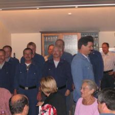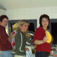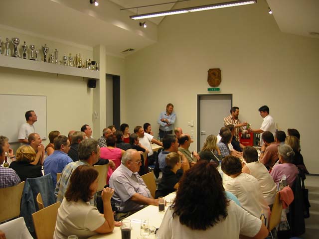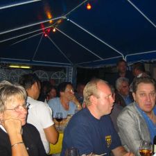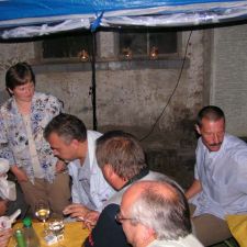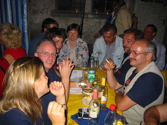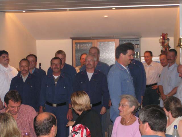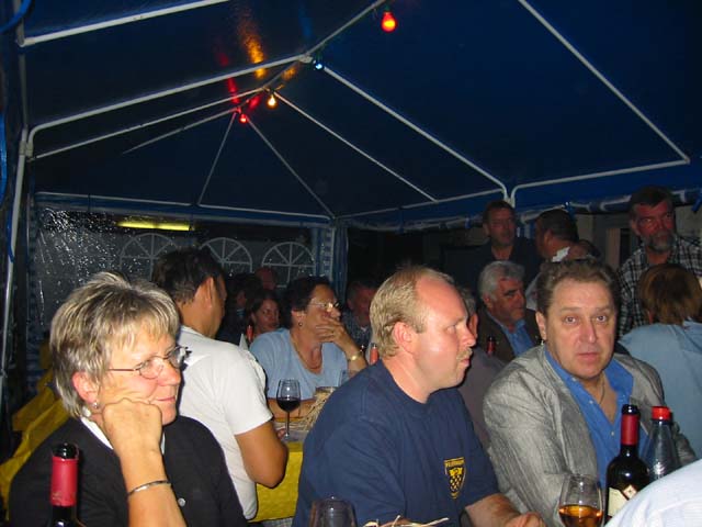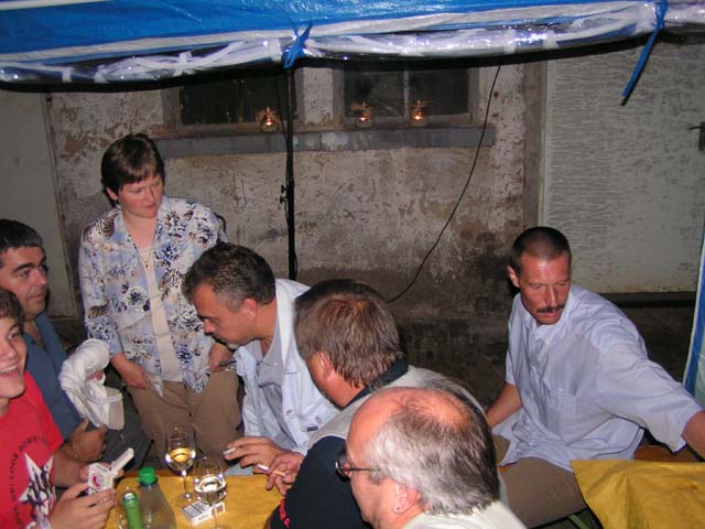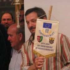 Das Abendessen gab es wieder im Gerätehaus und außerdem wurden die Gastgeschenke ausgetauscht. Die FF Sierndorf bekam eine Standarte zum 25-jährigen Jubiläum, im Gegenzug überreichte unser Kommandant 25 Flaschen niederösterreichischen Wein. Auf dem Etikett war ein Bild von einem Ereignis der Partnerschaft des jeweiligen Jahres aufgedruckt. Der restliche Abend wurde beim benachbarten Weinfest verbracht, wo bis spät in die Nacht gefeiert wurde.