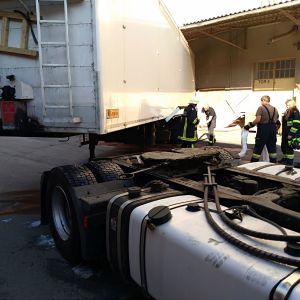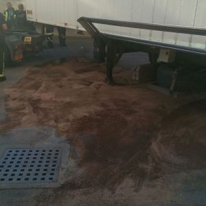 Bei Ladetätigkeiten am Gelände der Fa. Assmann ist bei einem LKW die Hydraulikleitung geplatzt. Das ausgelaufene Öl drohte in die Kanalisation zu laufen.