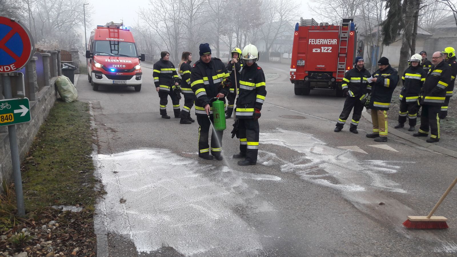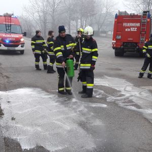 Am Freitag Vormittag wurden wir zum ersten Einsatz im Jahr 2020 angefordert. Bei einem Müllwagen war eine Hydraulikleitung geplatzt und etwas Öl trat auf die Fahrbahn aus. Nachdem der Schaden gleich erkannt wurde beschränkte sich die Verunreinigung auf eine relativ kleine Fläche.